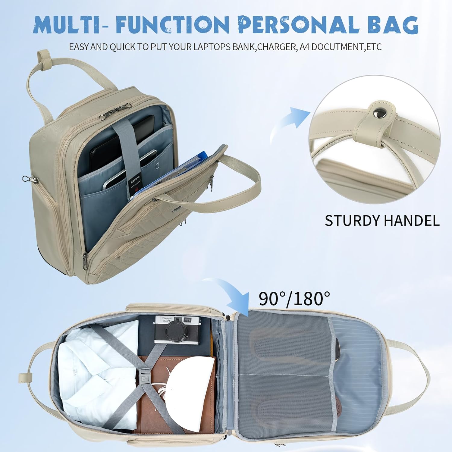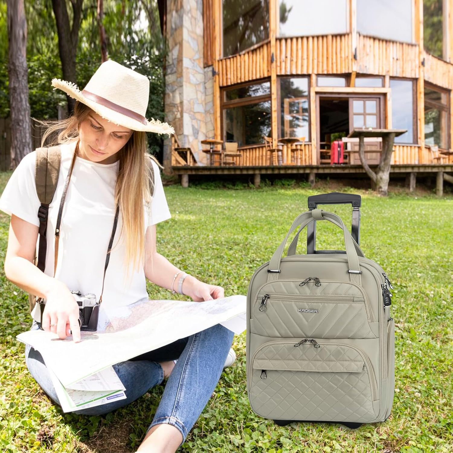 KROSER Carry On Underseat Multi-functional, 16-inch Underseater Lightweight Overnight Suitcase for Women, Light Khaki