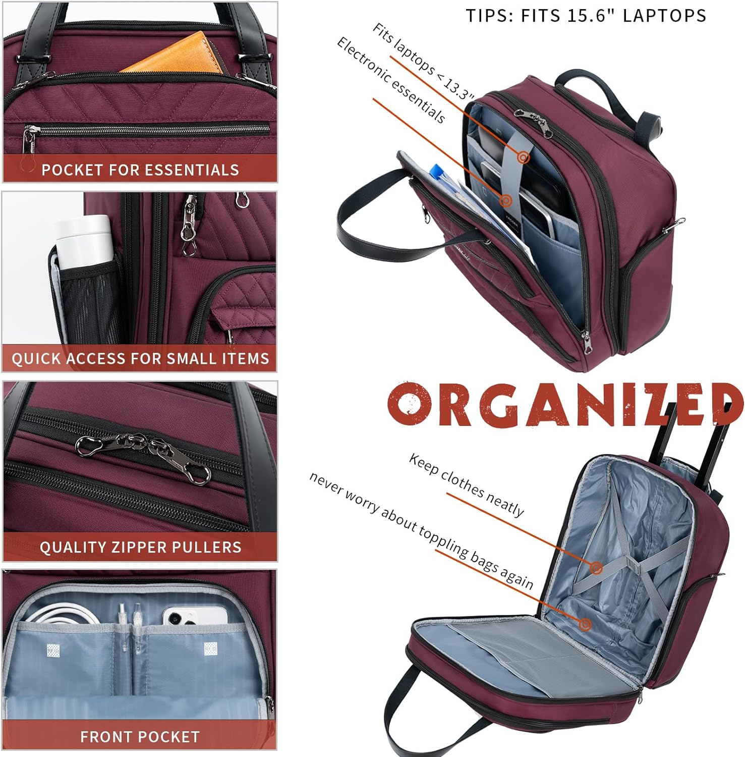 KROSER Carry On Underseat Multi-functional, 16-inch Underseater Lightweight Overnight Suitcase for Women, Burgundy