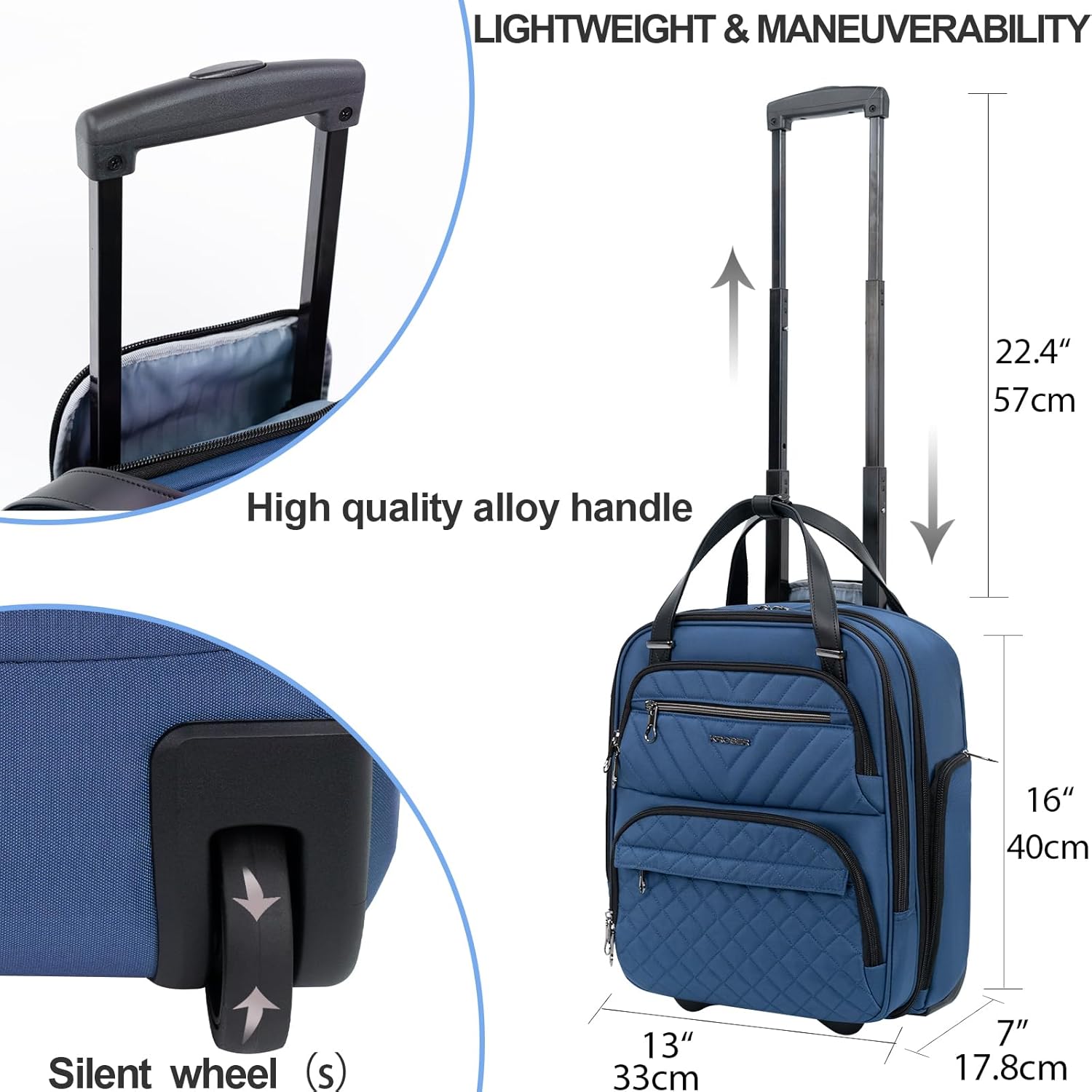 KROSER Carry On Underseat Multi-functional, 16-inch Underseater Lightweight Overnight Suitcase for Women, Haze Blue