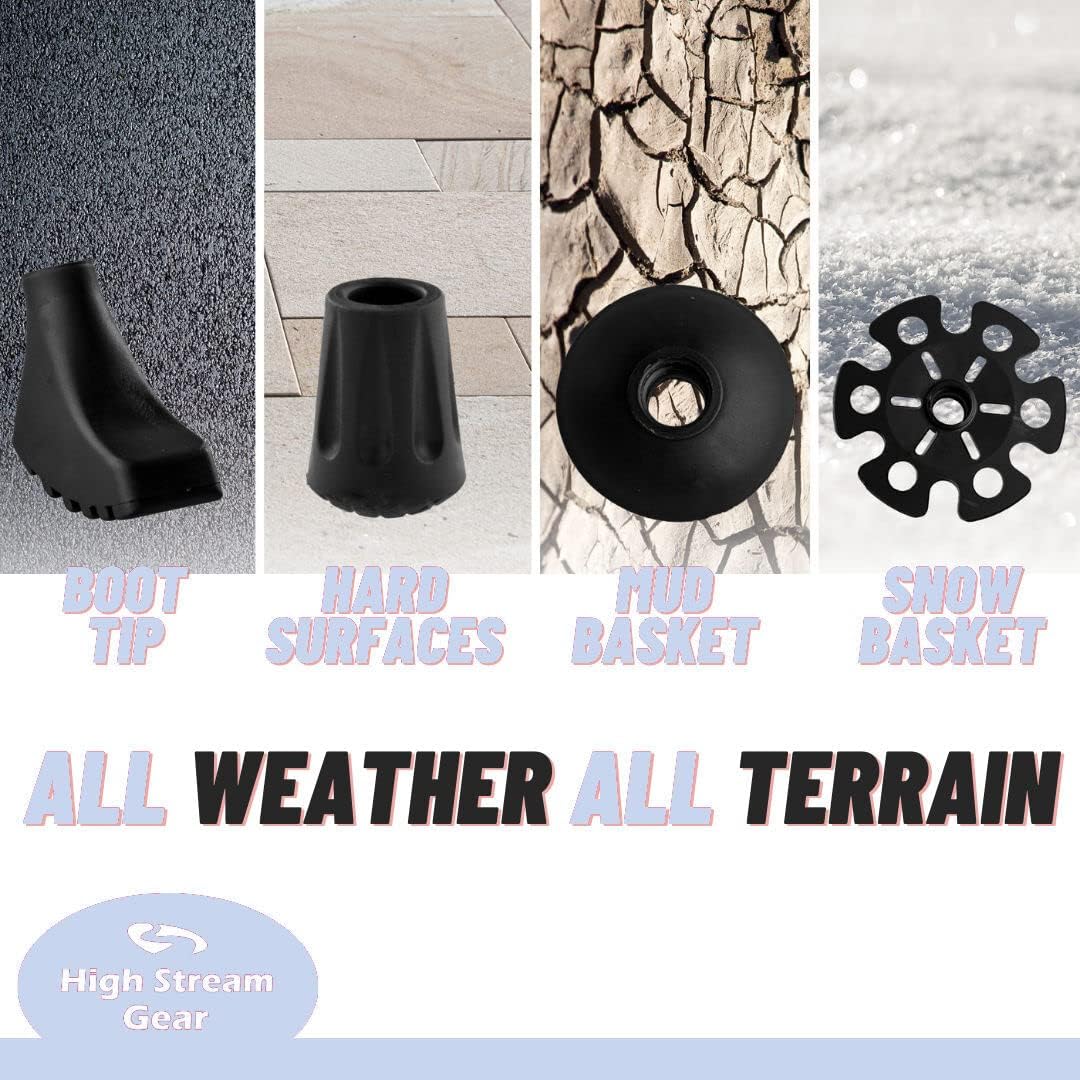 - KEEPS YOUR HANDS BLISTERS FREE - High Stream Gear’s Walking sticks for women and men are made with ergonomically designed handles that offer you a firm but comfortable grip. The handles will keep your hands dry.