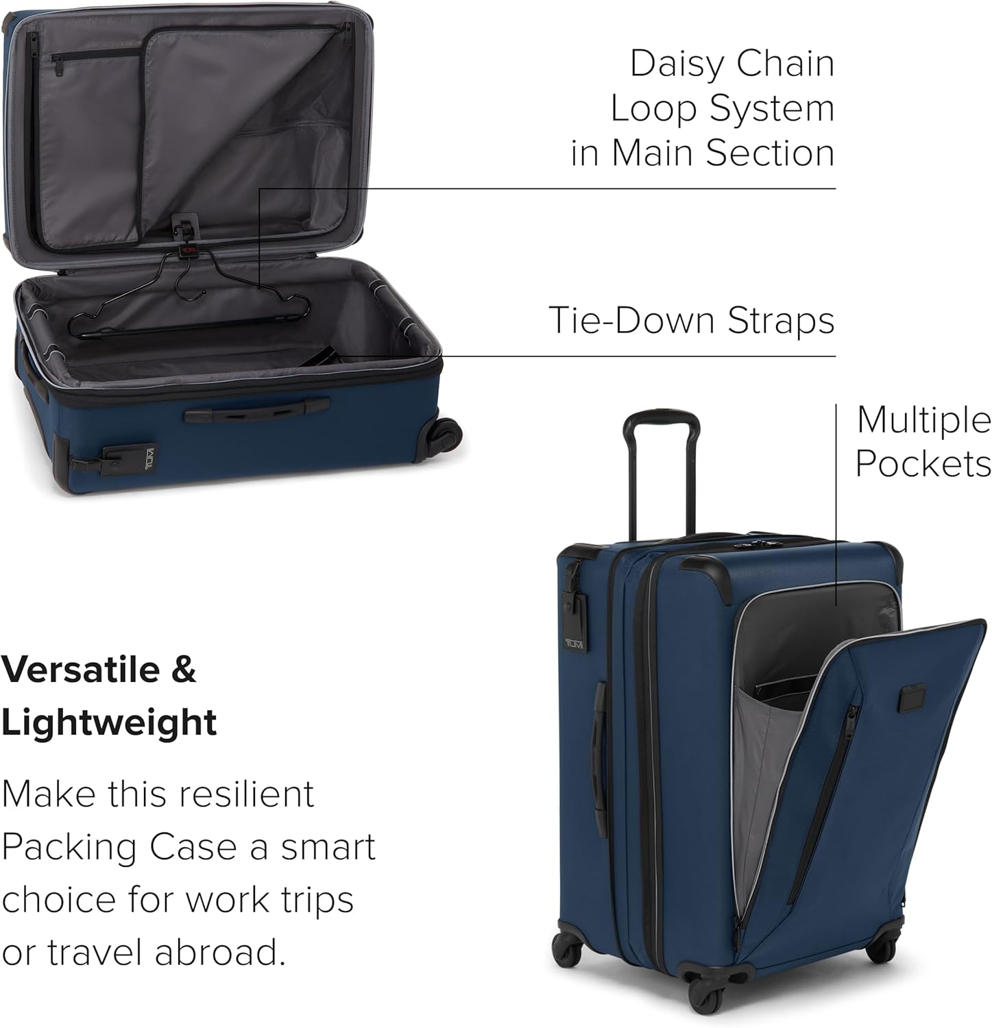 - Rolling Bag for Secure Travel: Equipped with TUMI Tracer, our packing case with wheels offers peace of mind, keeping your items safe and recoverable if lost