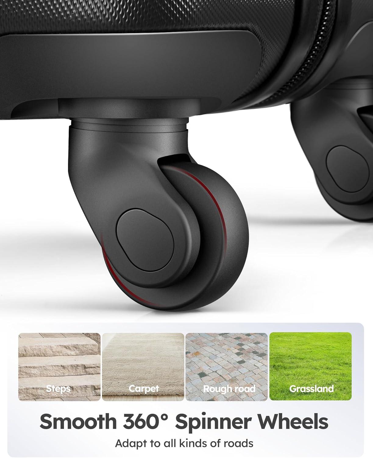 Suitour Luggage Sets 3 piece, Hardside Lightweight Suitcase sets with Spinner Wheels,TSA Lock,20/24/28 inches Travel Luggage Black