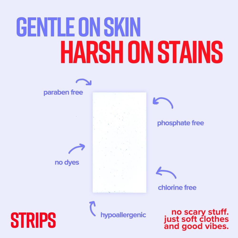 - Mess-Free & Easy to Use – No bulky jugs, no plastic waste, no goo. Simply tear along the perforation for small loads, toss in the drum or place in the detergent tray, and let STRIPS dissolve completely in hot or cold water.