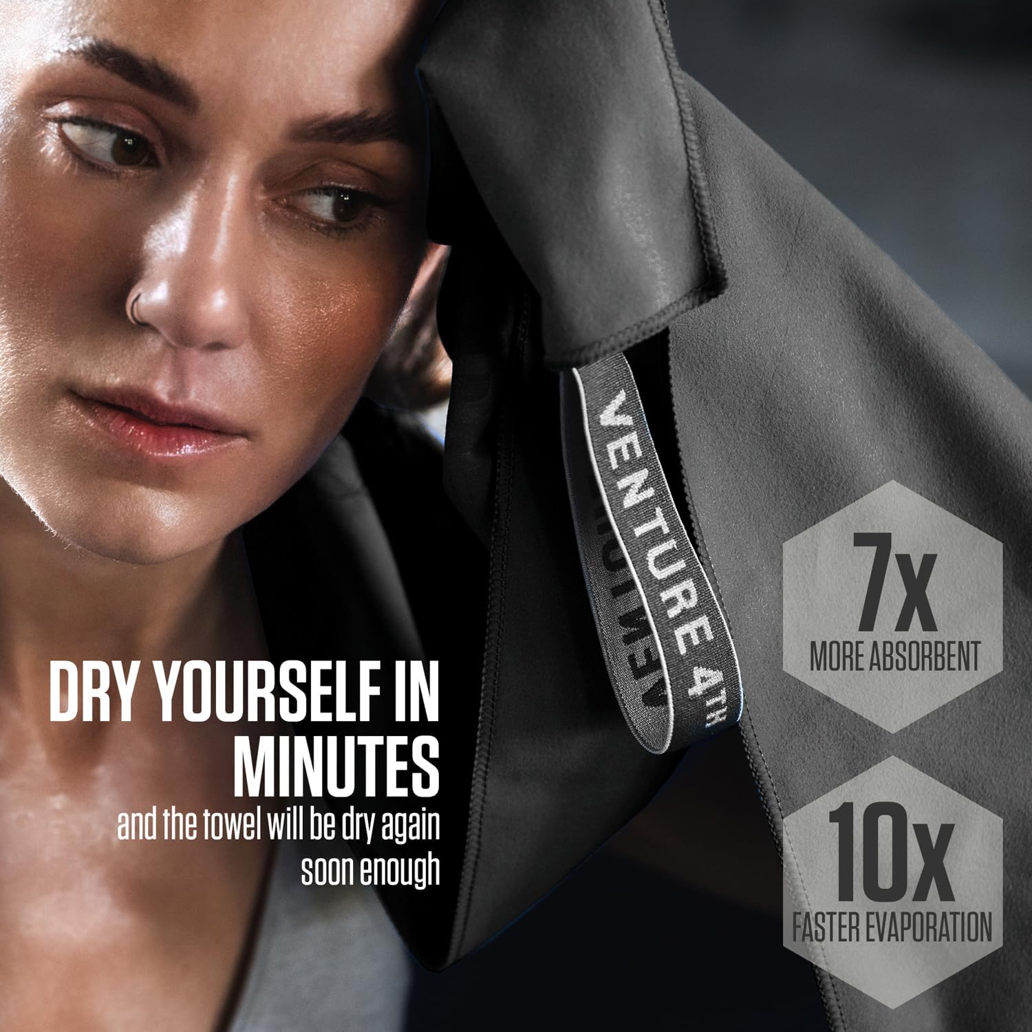 VENTURE 4TH Quick Dry Towel. Microfiber Travel Towel Ideal for Camping, Hiking, Backpacking, Gym. Lightweight & Fast Drying Travel Towels for Body. Compact & Easy to Pack - Black Extra Large