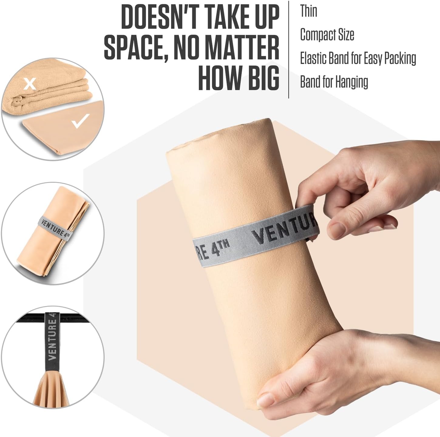 VENTURE 4TH Quick Dry Towel. Microfiber Travel Towel Ideal for Camping, Hiking, Backpacking, Gym. Lightweight & Fast Drying Travel Towels for Body. Compact & Easy to Pack - Beige Extra Large