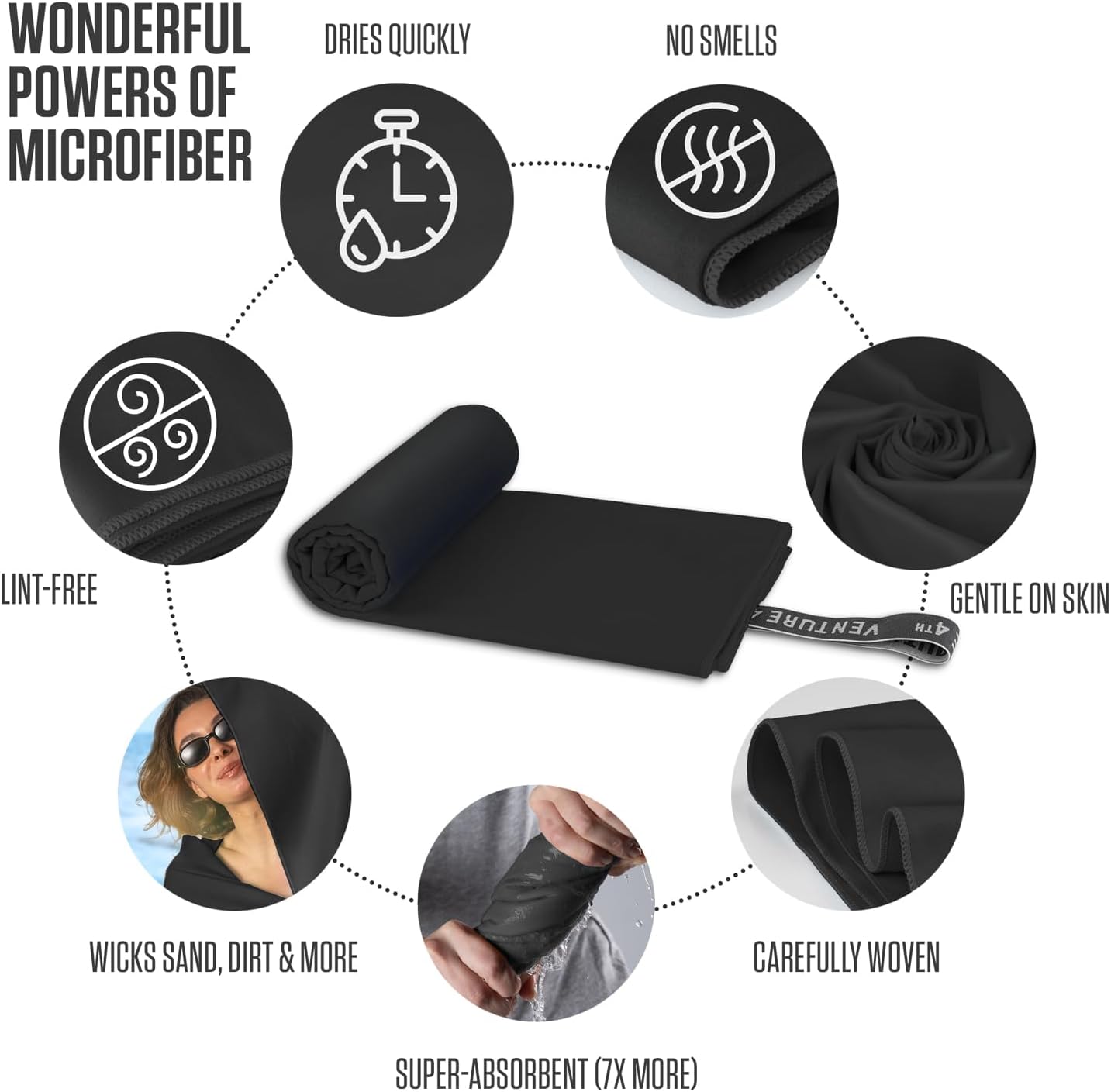 - Dries You (and Itself) in an Instant - Our travel towels are made out of microfiber. They are thin, soft, and practically lint-free, yet still absorb huge amounts of water (or sweat). We used this super material as it takes up to 7X more water than a regular towel.