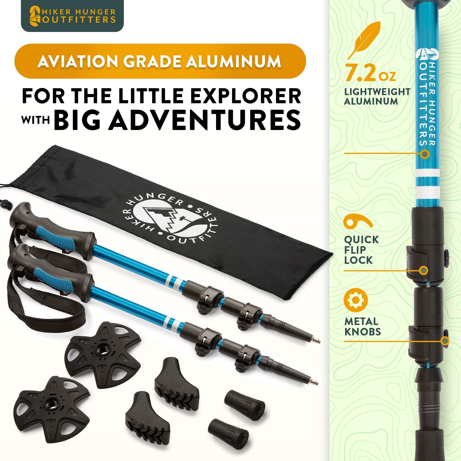 - Built to Endure - Crafted from aviation-grade aluminum, these hiking sticks for kids withstand rough play. Metal knobs and flip locks offer durability for lifelong memories on the trail.