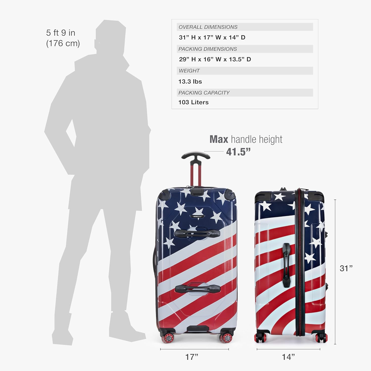 Traveler's Choice Maxporter II 30" Hardside Spinner Trunk Luggage, TSA Lock, American Flag
