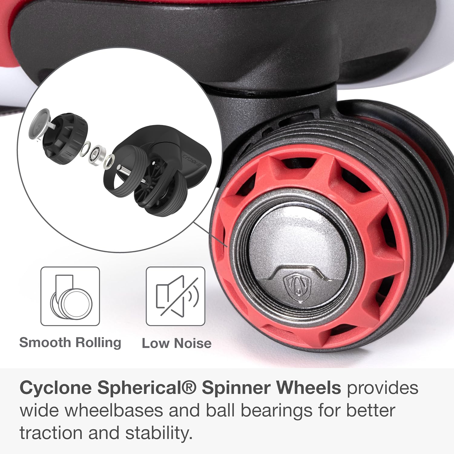 - Patented Dual Cyclone Spherical spinner wheel system provides wide wheel bases for better traction and stability.