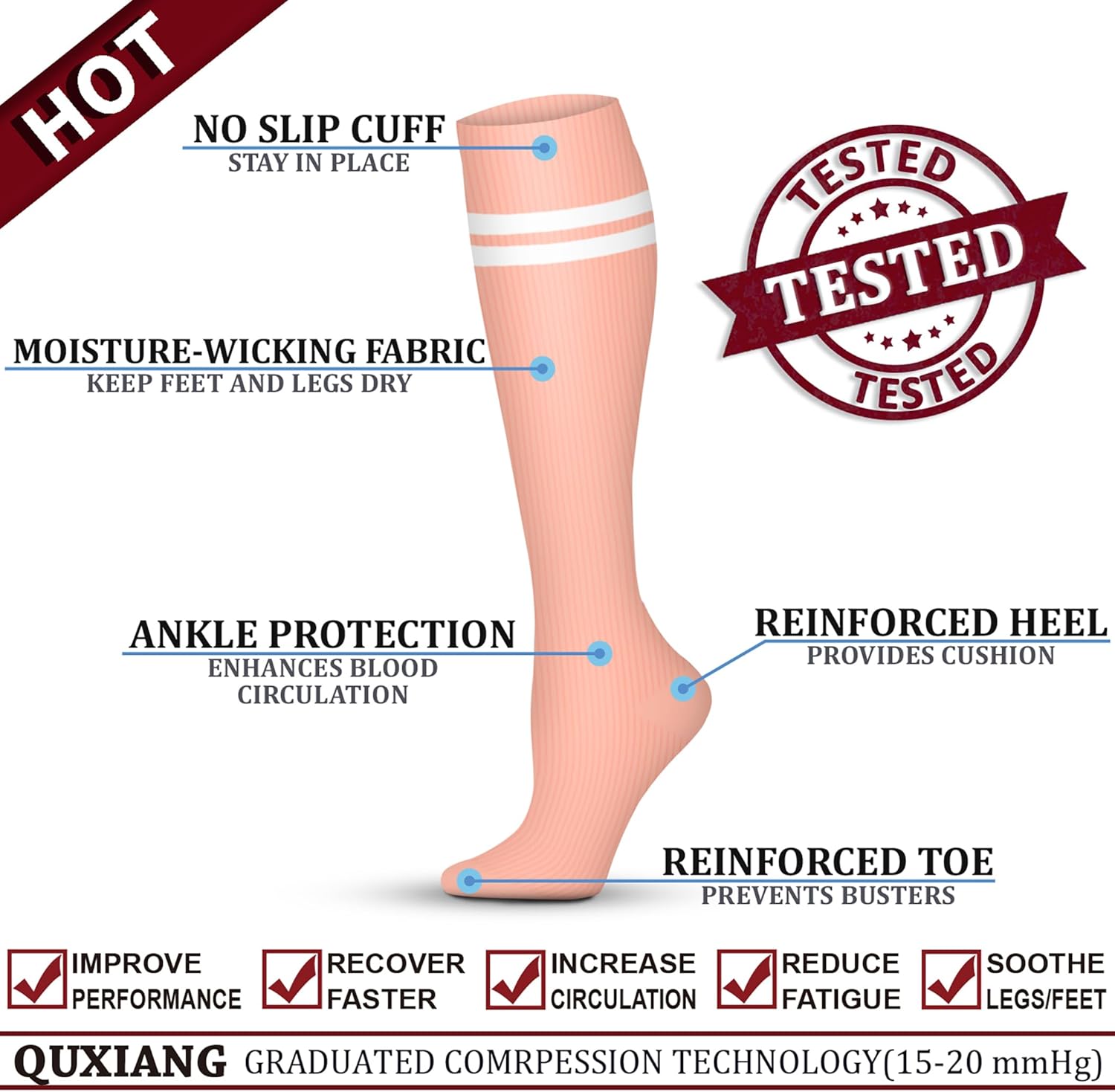 - COMPRESSION BENEFITS - QUXIANG Compression socks are designed to promote blood circulation and oxygen flow preventing fatigue and helps in muscle recovery. Whether you are an athlete, sportsperson, teacher, flight crew, receptionist, office worker, pregnant, recovering patient, nurturing mother, elderly, our socks are universally suitable for all work.
