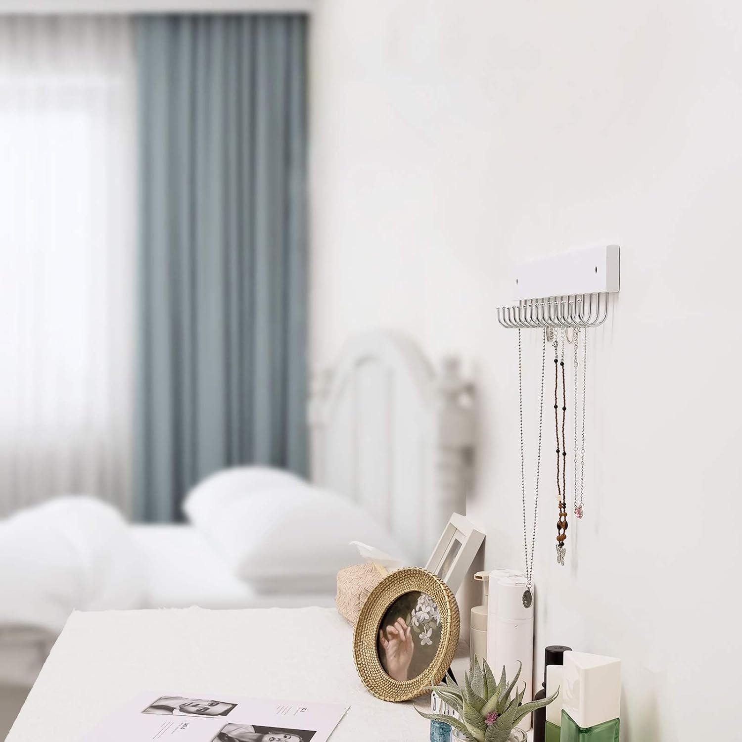 - 【Durable & Reliable】: Crafted with high-quality materials, our necklace holder is built to last. The metal hooks are strong and won't bend, ensuring your jewelry stays safe and secure.