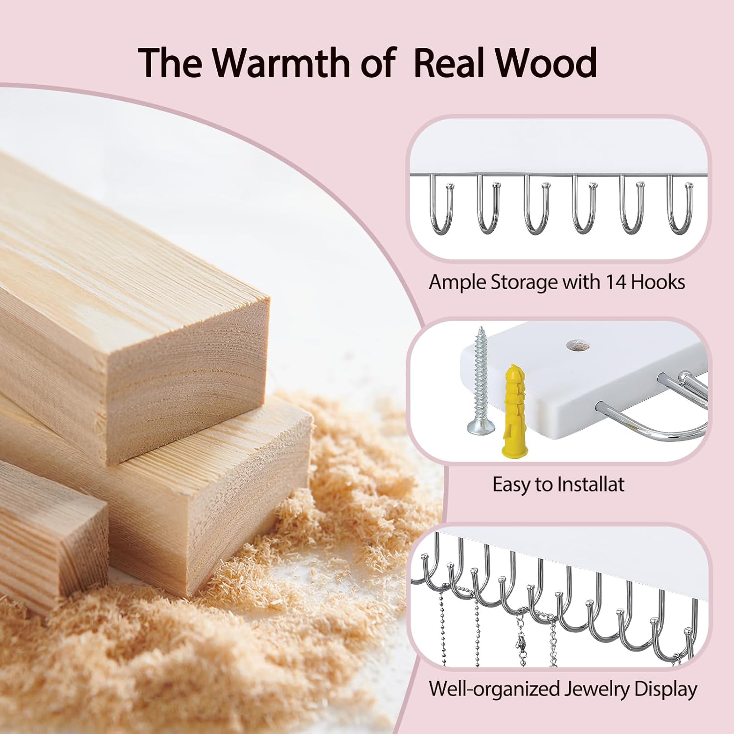 - 【Sleek Metal Curved Hooks】: The metal hooks with a stylish curve design, providing a secure and attractive display for your jewelry collection.