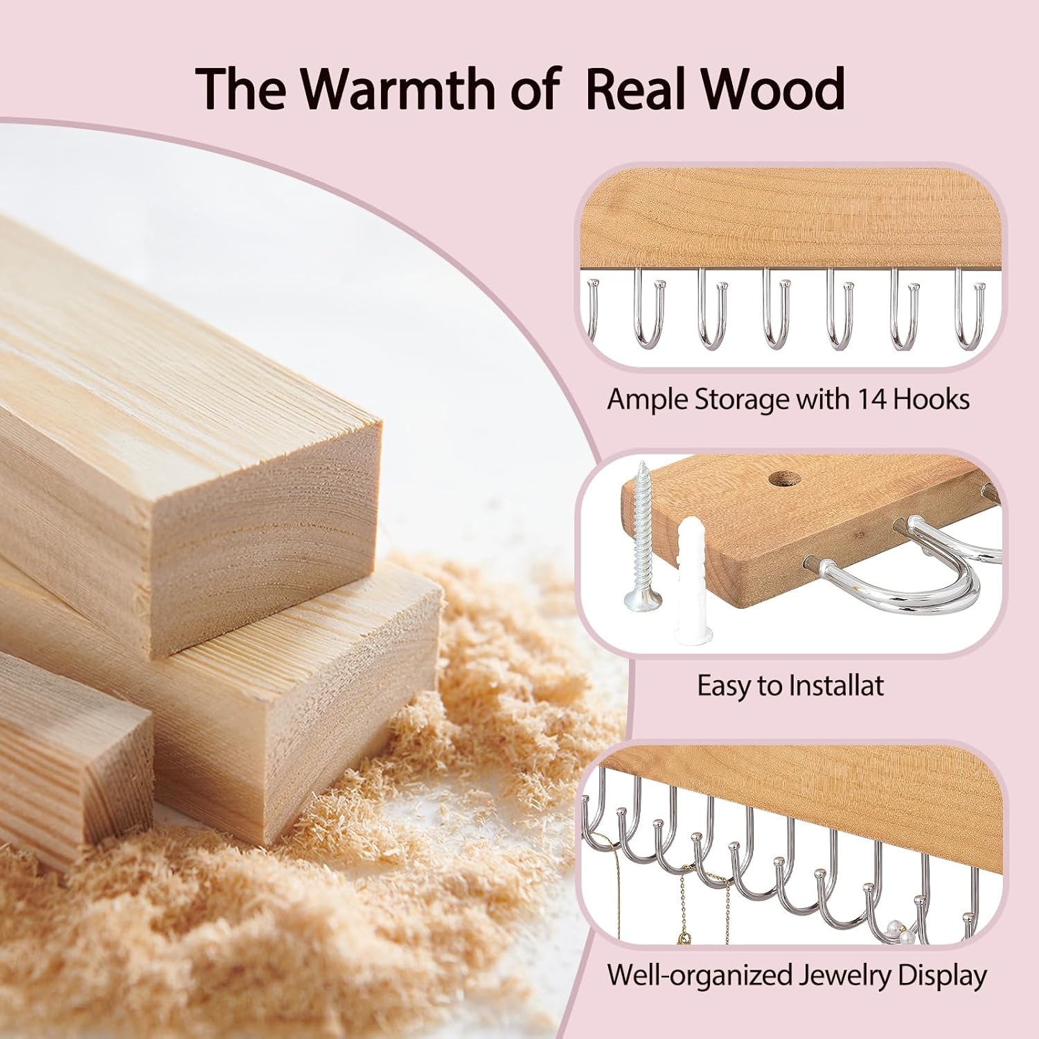- 【Ample Storage with 12 Hooks】: With 12 thoughtfully designed hooks, this wall-mounted jewelry holder ensures you have more than enough space to neatly organize and display your jewelry collection. No more compromises—every piece has its place, keeping your treasures easily accessible and tangle-free.