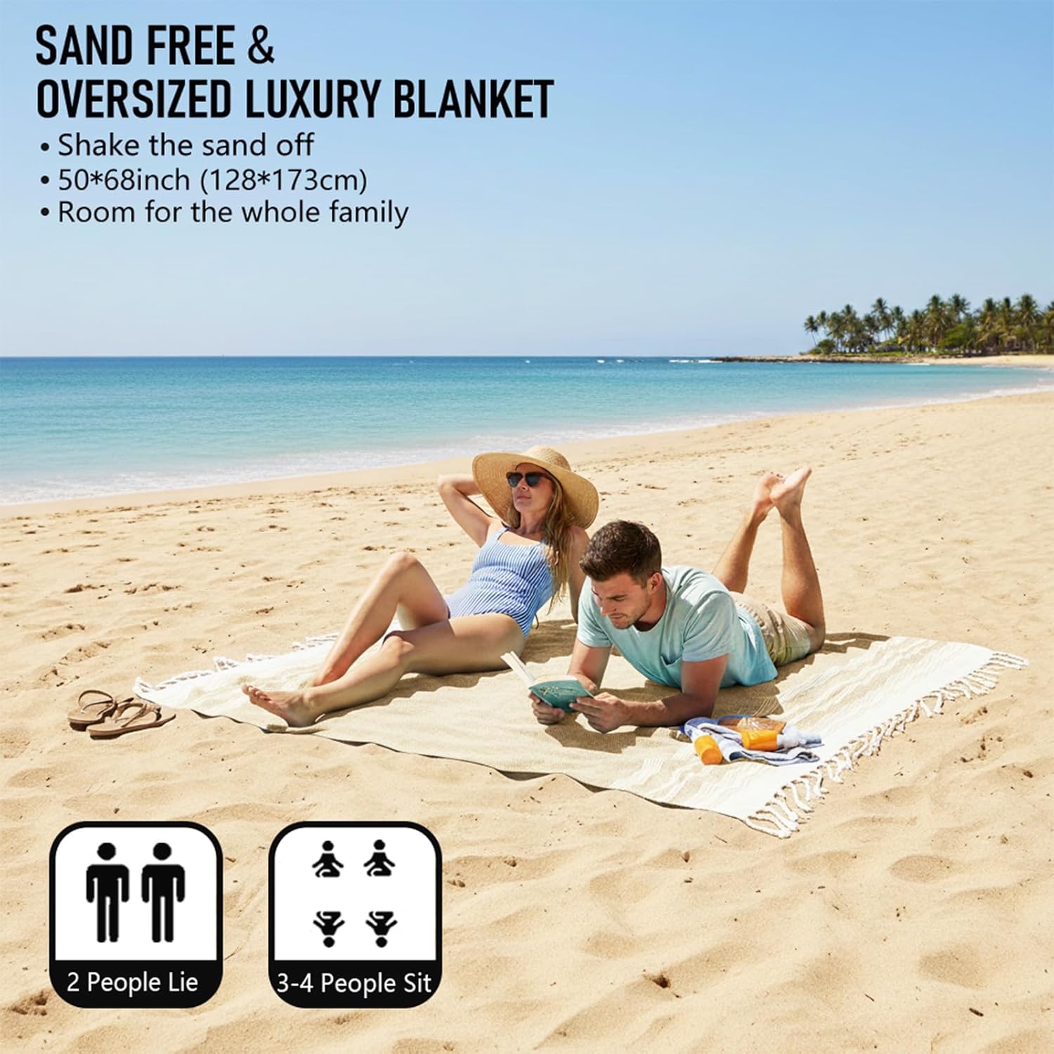 - OVERSIZED and COMPACT : Upgrade your beach game with our Türkiye Cotton Blanket Beach Towel, a whopping 50 x 68 inch of pure comfort. Perfect for family beach days or cozy couple camping. Easy fold design means more room in your suitcase for fun. Grab yours now and make every adventure a plush affair