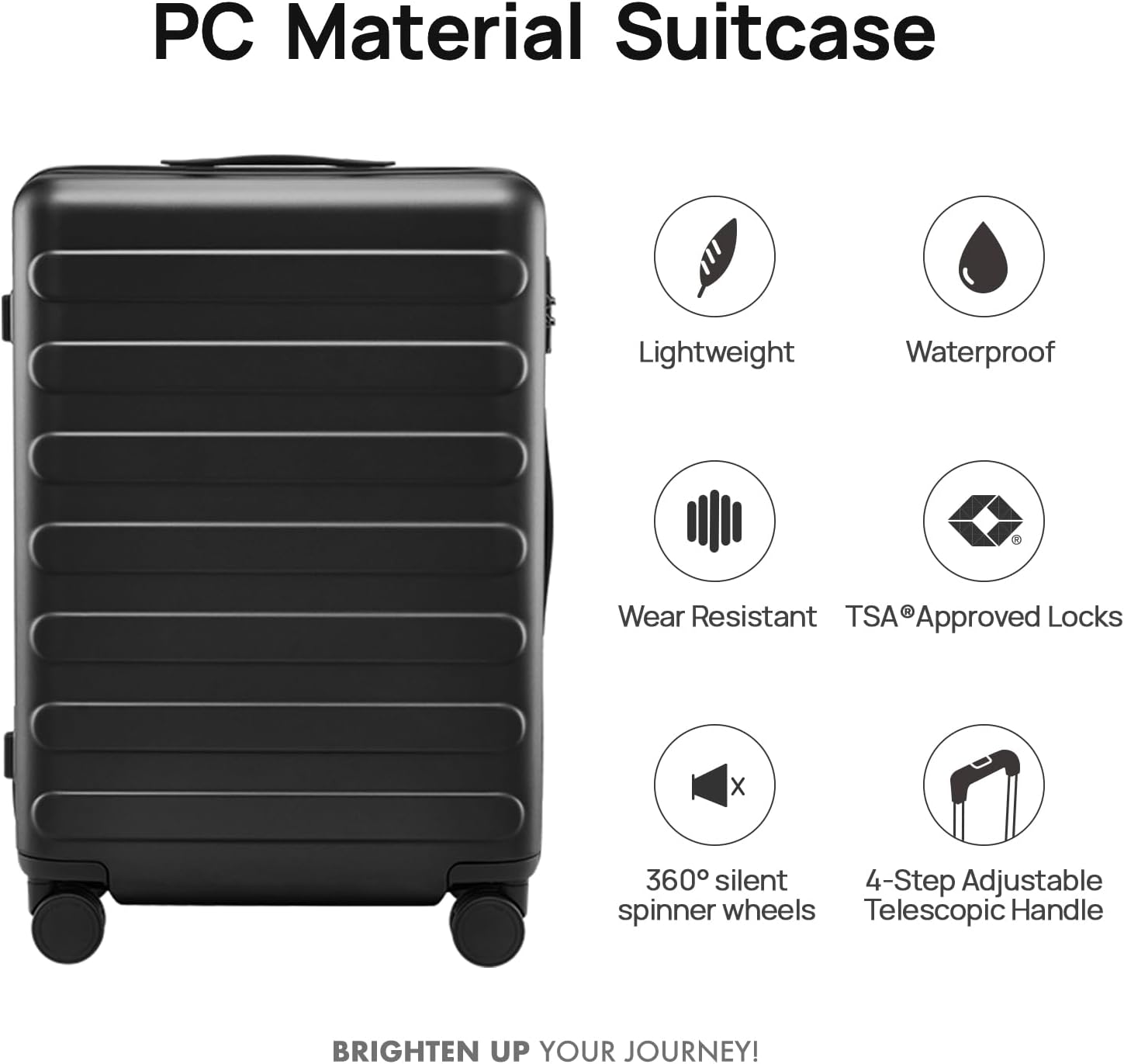 NINETYGO Medium Checked Luggage 26 Inch, Checking In Luggage with Smooth Spinner Wheels, Lightweight, Hard Shell PC Suitcase, Lightweight Travel Luggage, TSA Approved (Black, Rhine Basic)