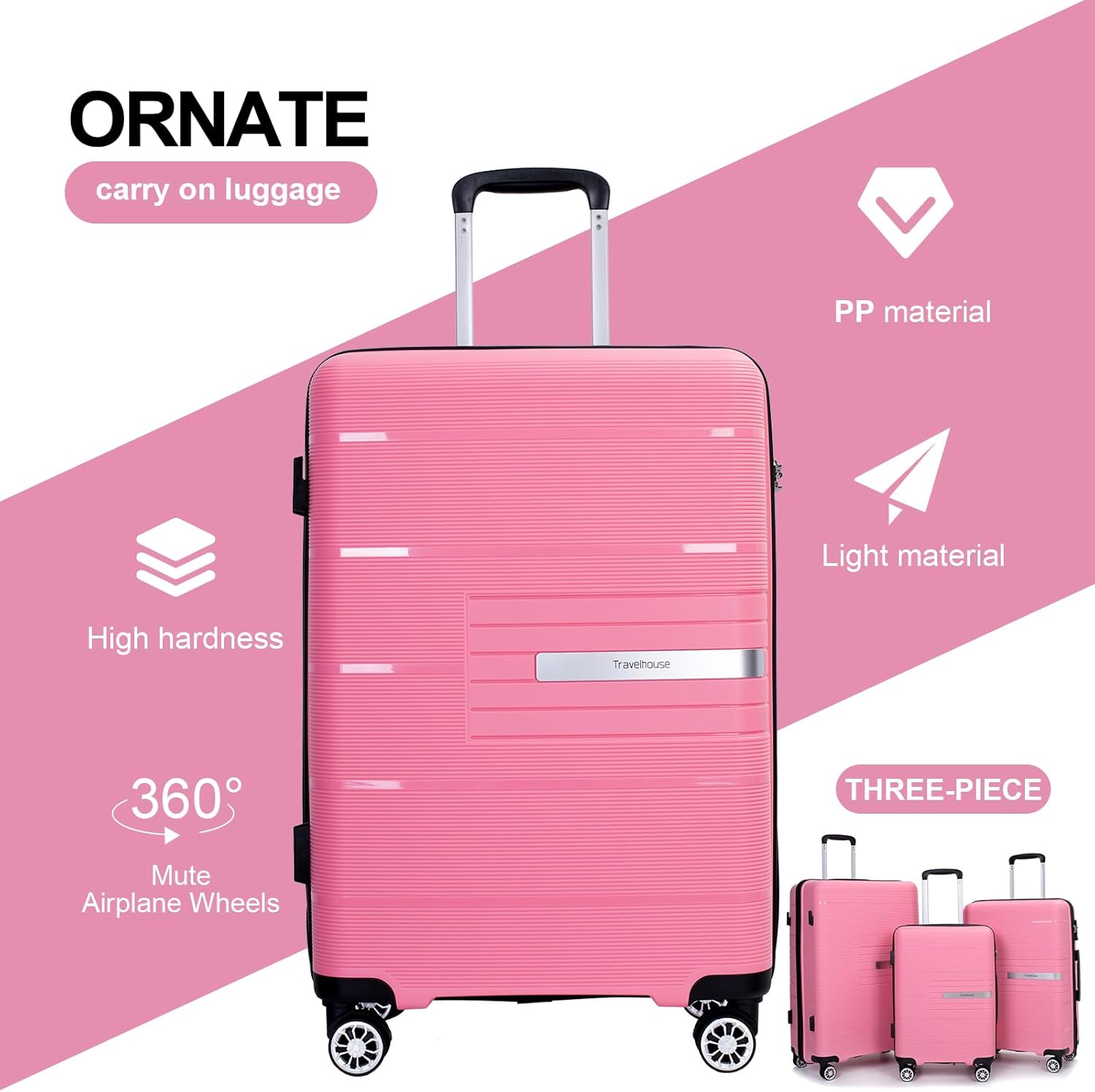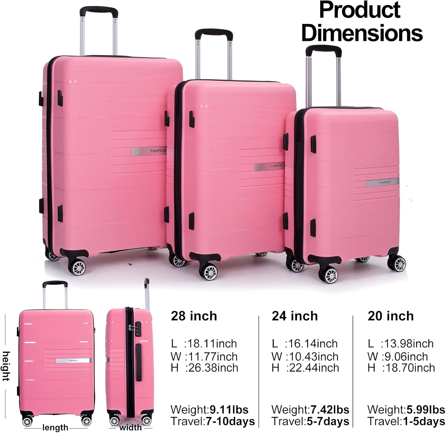 - 【3 Piece Hardshell Luggage Sets】: Made from durable lightweight PP material, these hard-shell shells have an incredibly impact-resistant, textured surface design that resists scratching. 3 piece sets includes: 20” carry on luggage/24” suitcase/28” checked luggage