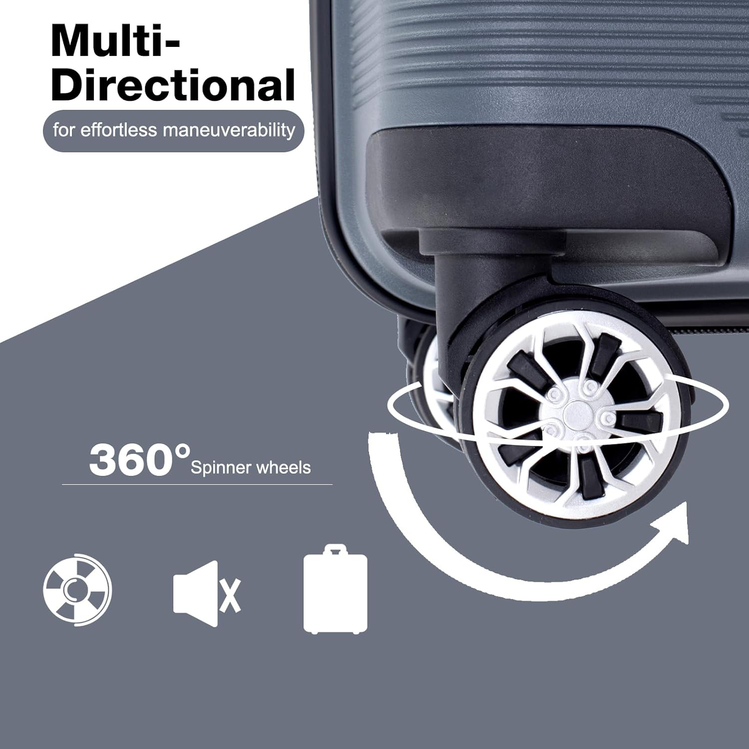 - 【Suitcases with Double Spinner Wheels】: Luggage moves very silent and smoothly with 360°rotate double wheels. Four 360-degree multi-directional spinner wheels for effortless mobility, using new soft TPU and lubricating balls inside wheels