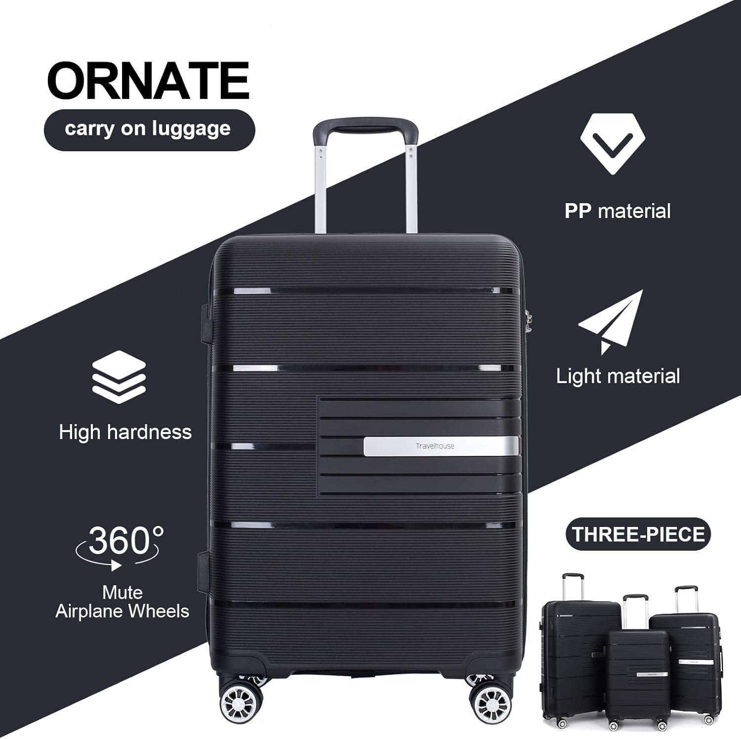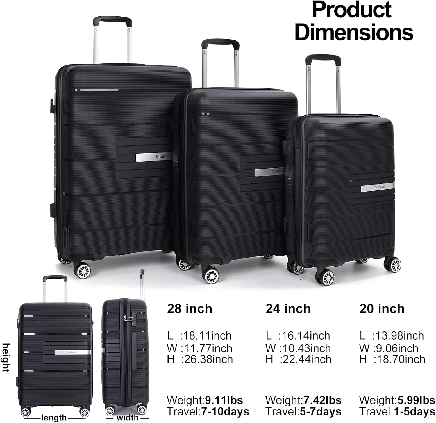 - 【3 Piece Hardshell Luggage Sets】: Made from durable lightweight PP material, these hard-shell shells have an incredibly impact-resistant, textured surface design that resists scratching. 3 piece sets includes: 20” carry on luggage/24” suitcase/28” checked luggage