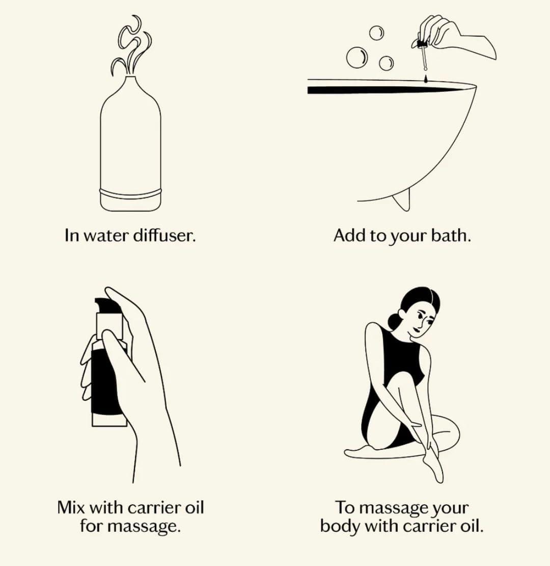 - Clinically tested and dermatologist-supervised. Add to diffuser for relaxation, dilute for massage, or swirl into bath water for a soothing soak. Pure, natural, and free of synthetics, parabens, and palm oil.