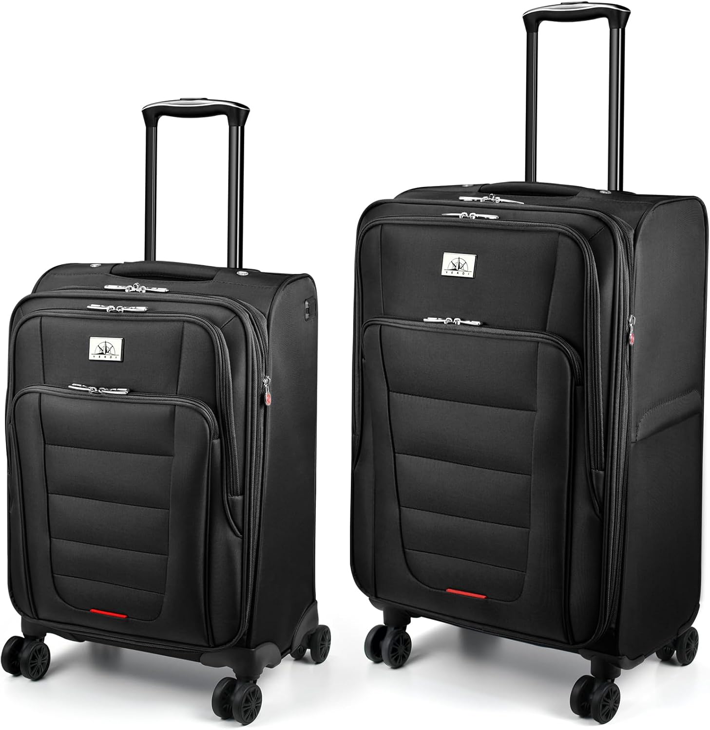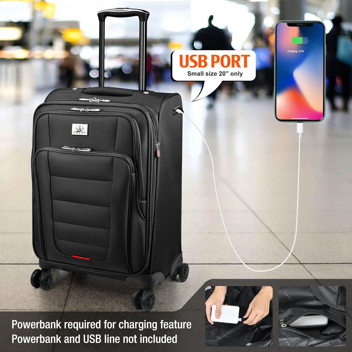 Verdi Luggage 2 Piece Set Suitcase Spinner Wheels Softshell Expandable, Carry On Luggage with USB Port (Black, 2-Piece set(20/24))