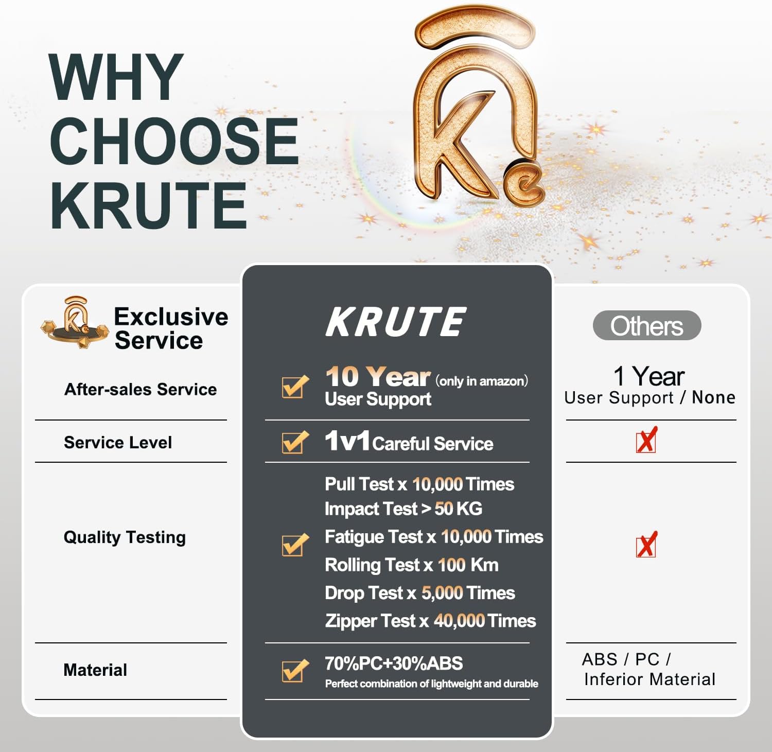 Krute Carry On Luggage 20 inch Suitcase with Spinner Wheels Airline Approved Hard Shell Luggages PC ABS TSA Lock Suitcase