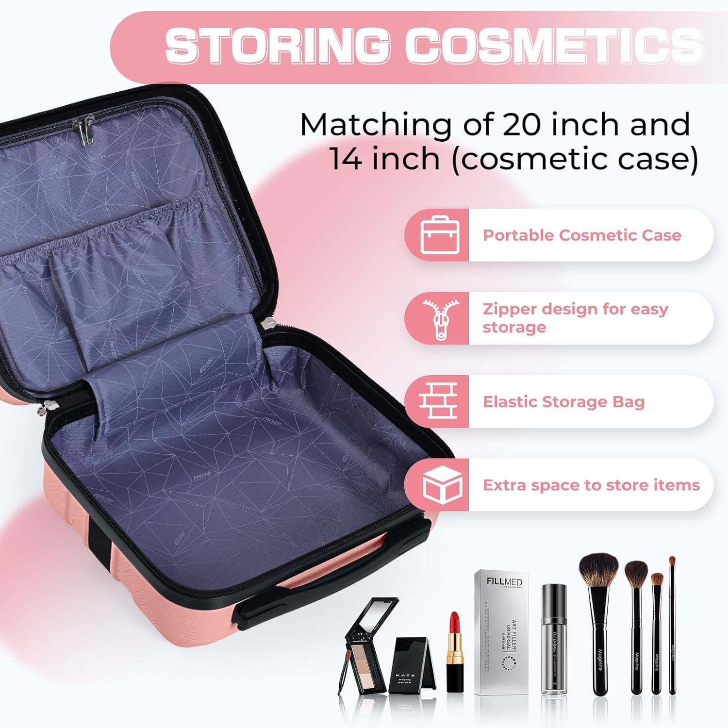 AnyZip Carry On Luggage 2PCS Luggage Set PC ABS Hardshell Lightweight Suitcase TSA Lock with 4 Spinner Wheels(14/20, Pink)