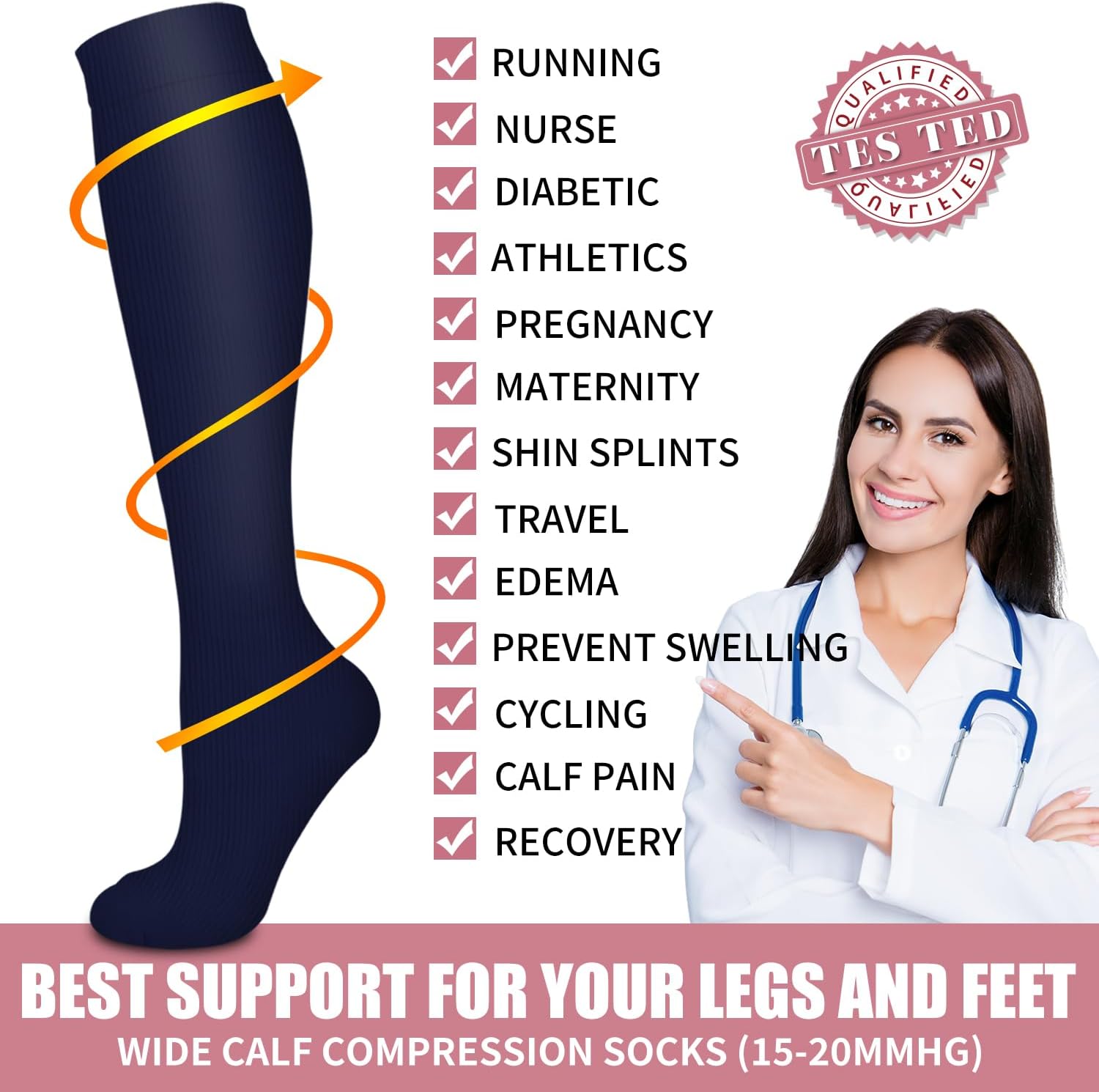 - 6 PACK OF COMPRESSION SOCKS - You no longer have to settle.Our design of comfort and style comes at a very affordable price in comparison.There are available in different fabrics and colors.They are discreet and look like the ordinary socks you have already wear to work.Our socks are universally suitable for all work.Whether you are an athlete,teacher,flight,crew,receptionist,office,worker,pregnant, elderly ,they'll work for you as you work for yourself and your family.
