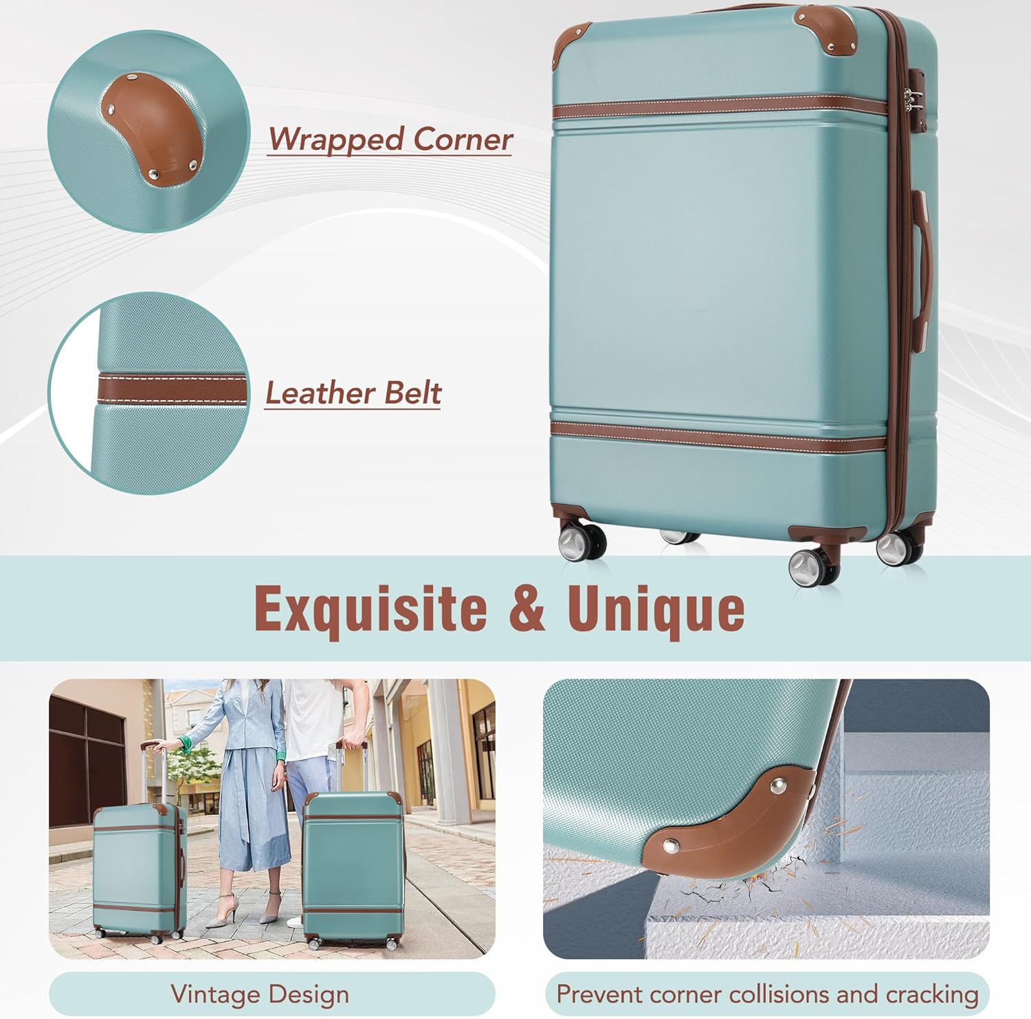 Merax Luggage Set 2 Piece Suitcase Set with Cosmetic Case Expandable Spinner Wheels Vintage Luggage Sets(Blue Green,20"+28")