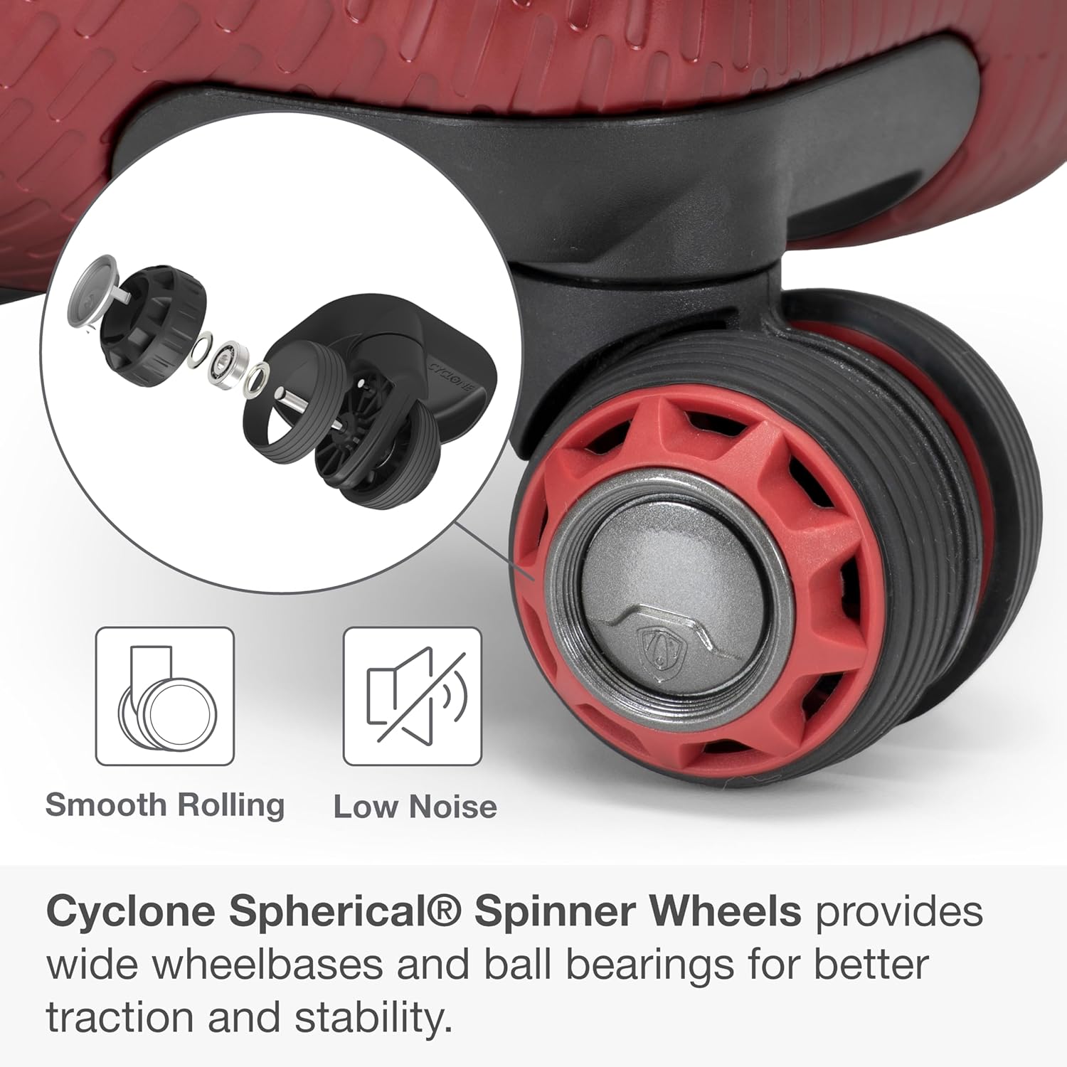- Patented Dual Cyclone Spherical spinner wheel system provides wide wheel bases for better traction and stability.