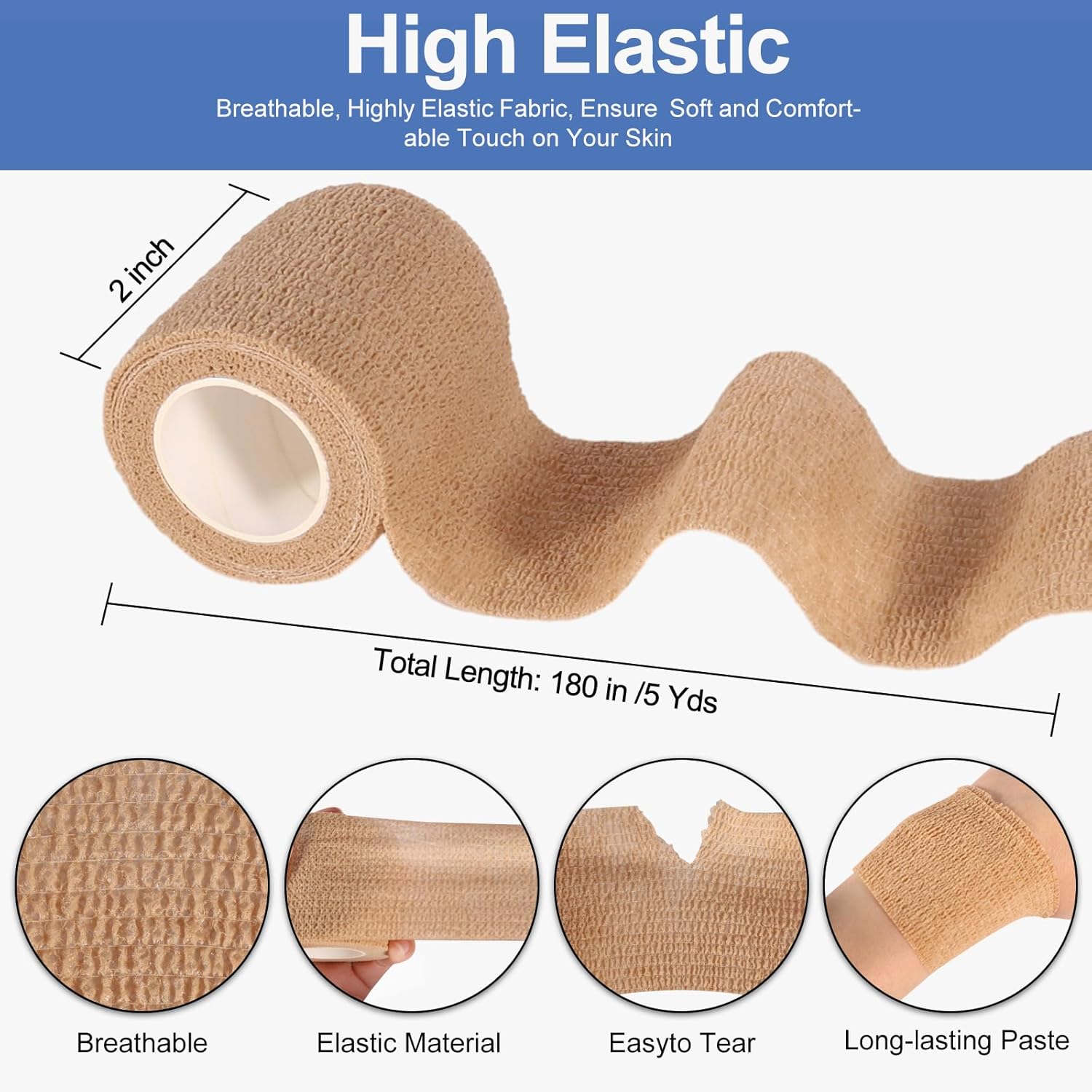 - 【Self Adhesive Bandage】The strong self-adhesive design of this bandage wrap eliminates the need for additional tape or pins, making it easy to apply and providing long-lasting support. It is easy to tear and does not stick to skin or hair, ensuring hassle-free removal.