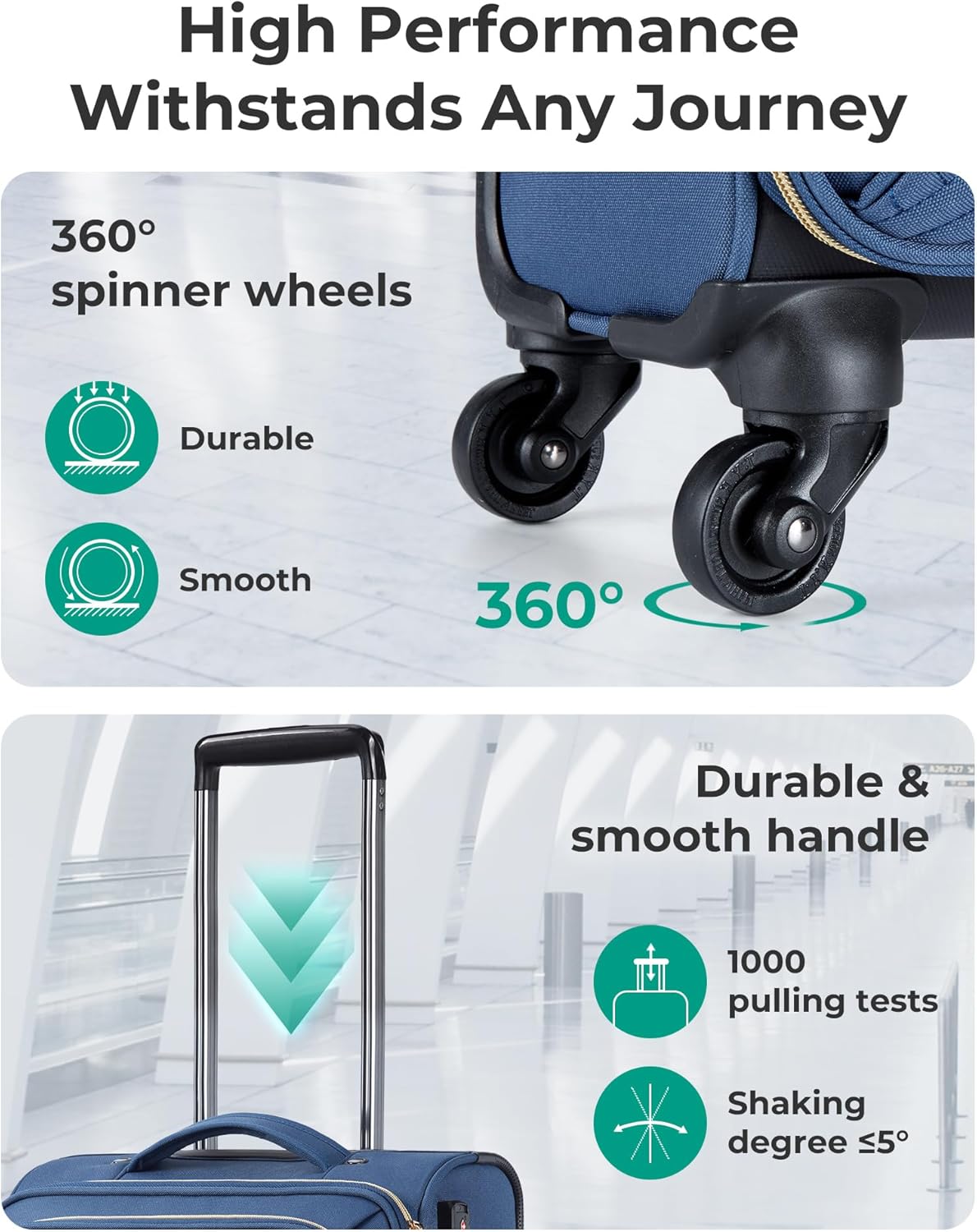 - Easy to Maneuver: Featuring 360° spinner wheels, this small under seat suitcase guarantees smooth gliding on any surface, even when fully packed, ensuring mobility. The extension handle ensures seamless and long-lasting. 2-step ergonomic high-grade aluminum tube handle can adjust to multiple heights while minimizing wobble, which offers easy mobility. Additionally, sturdy top and side handles offer convenient lifting and carrying options for effortless maneuvering