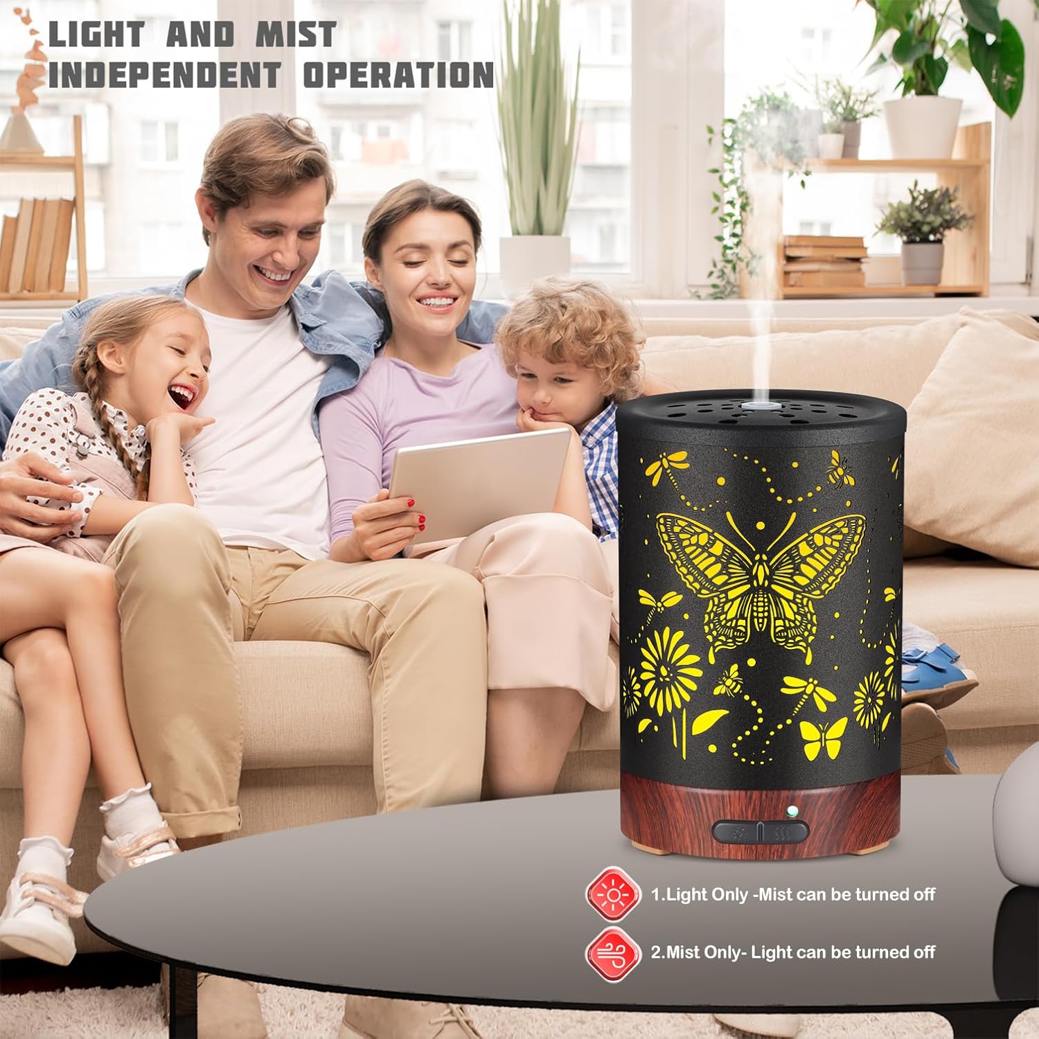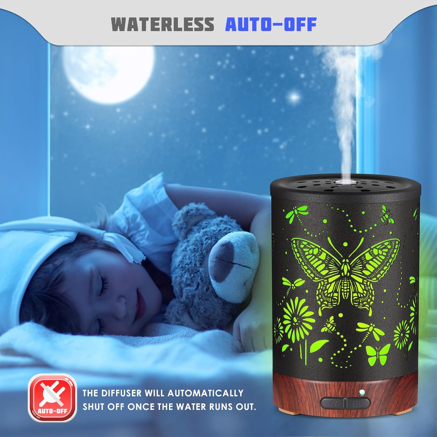 Metal Essential Oils Diffuser 150ML Christmas Aromatherapy Diffuser Cool Mist Humidifier with 7 Colors Lights Waterless Auto Off Air Diffusers as Gifts for Mom(Butterfly)