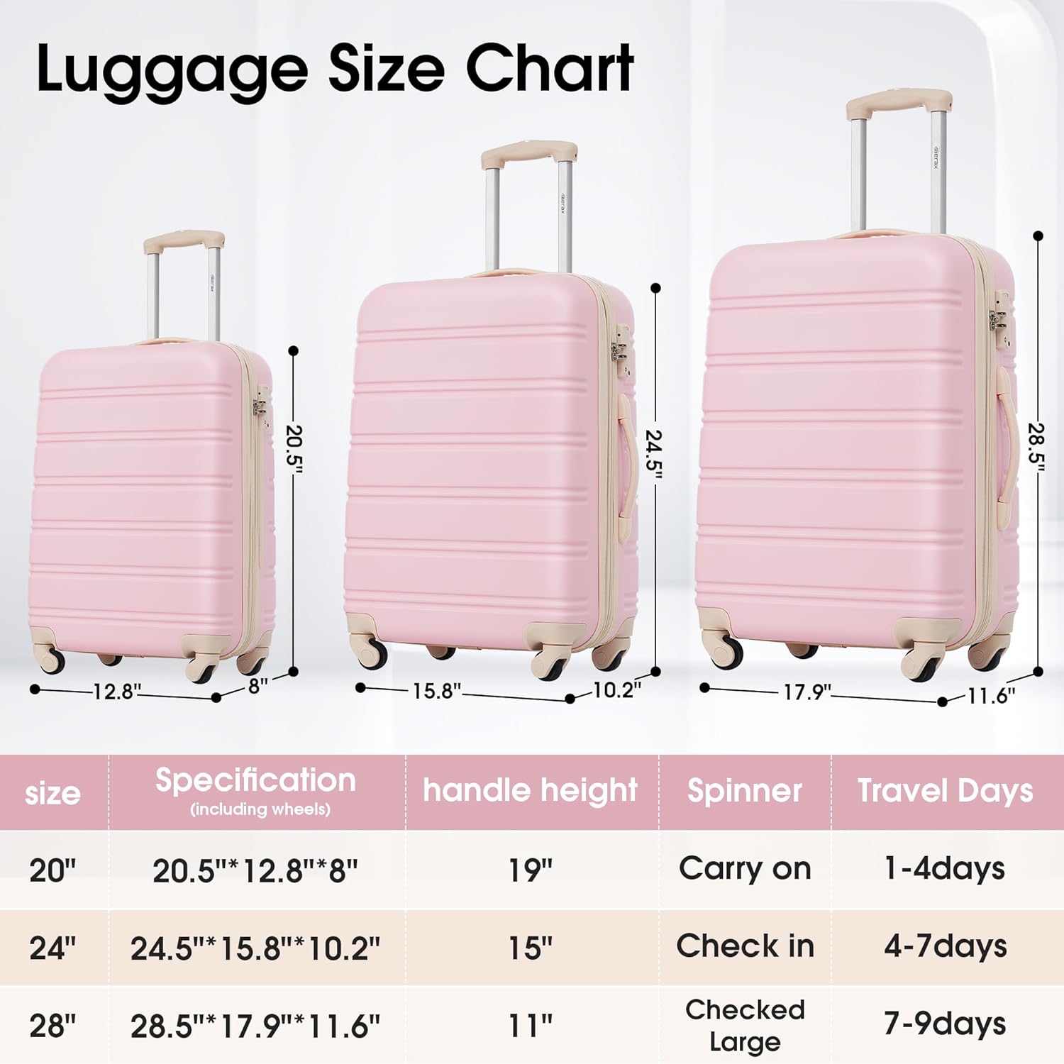 Merax Luggage Sets of 3 Piece Carry on Suitcase Airline Approved,Hard Case Expandable Spinner Wheels(White Pink)