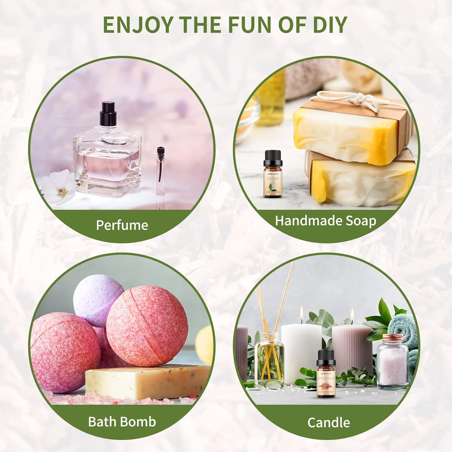 - Variety Uses & Applications: Suitable for diffuser, clean, spa massage, perfume, home, bedroom, living room, bathroom,office, aromatherapy, outdoors, soap or candle making, yoga room, and car,etc.