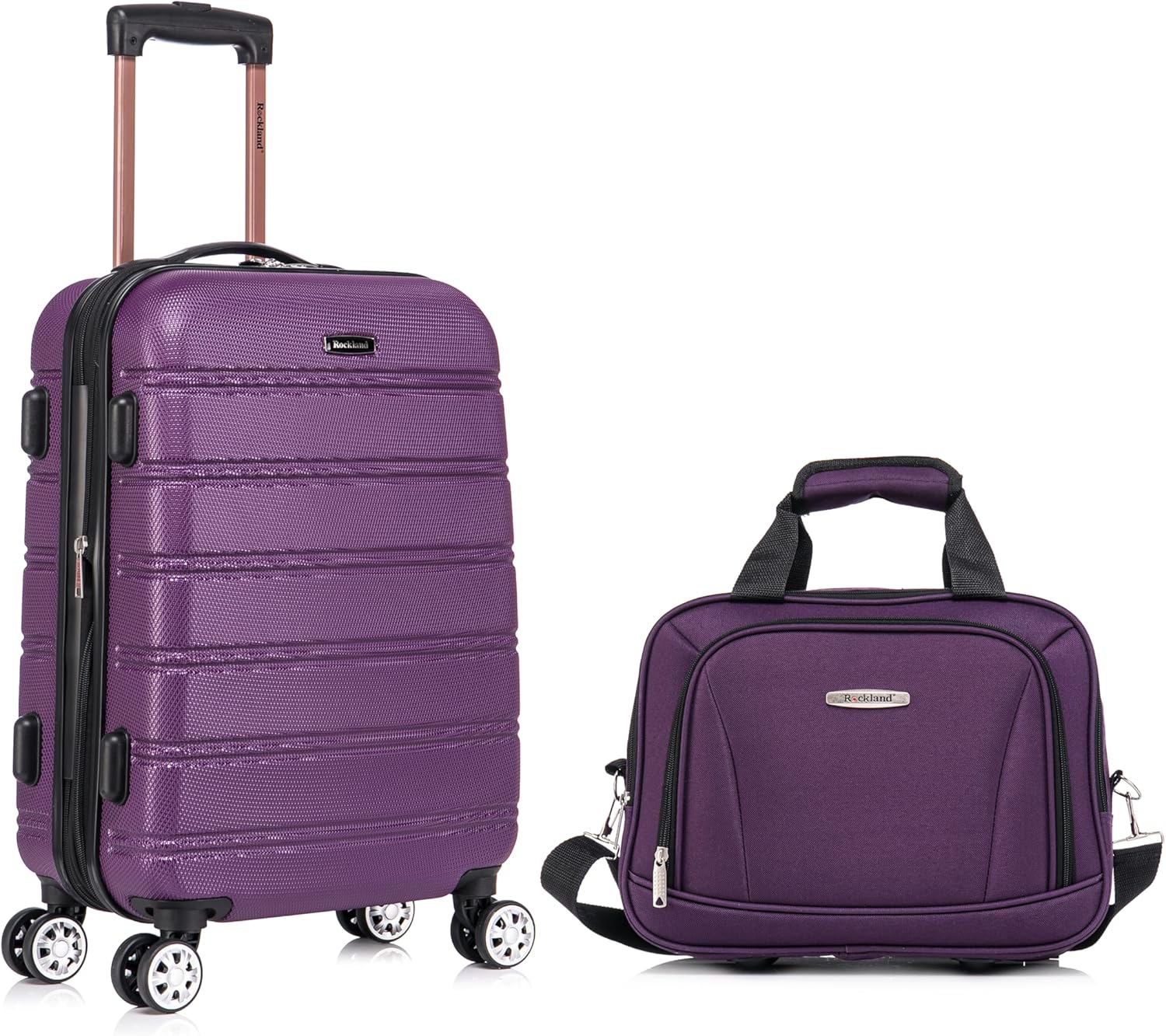 Rockland Melbourne Hardside Expandable Spinner Wheel Luggage Set, Purple, Carry-On 20-Inch and Tote 14-Inch