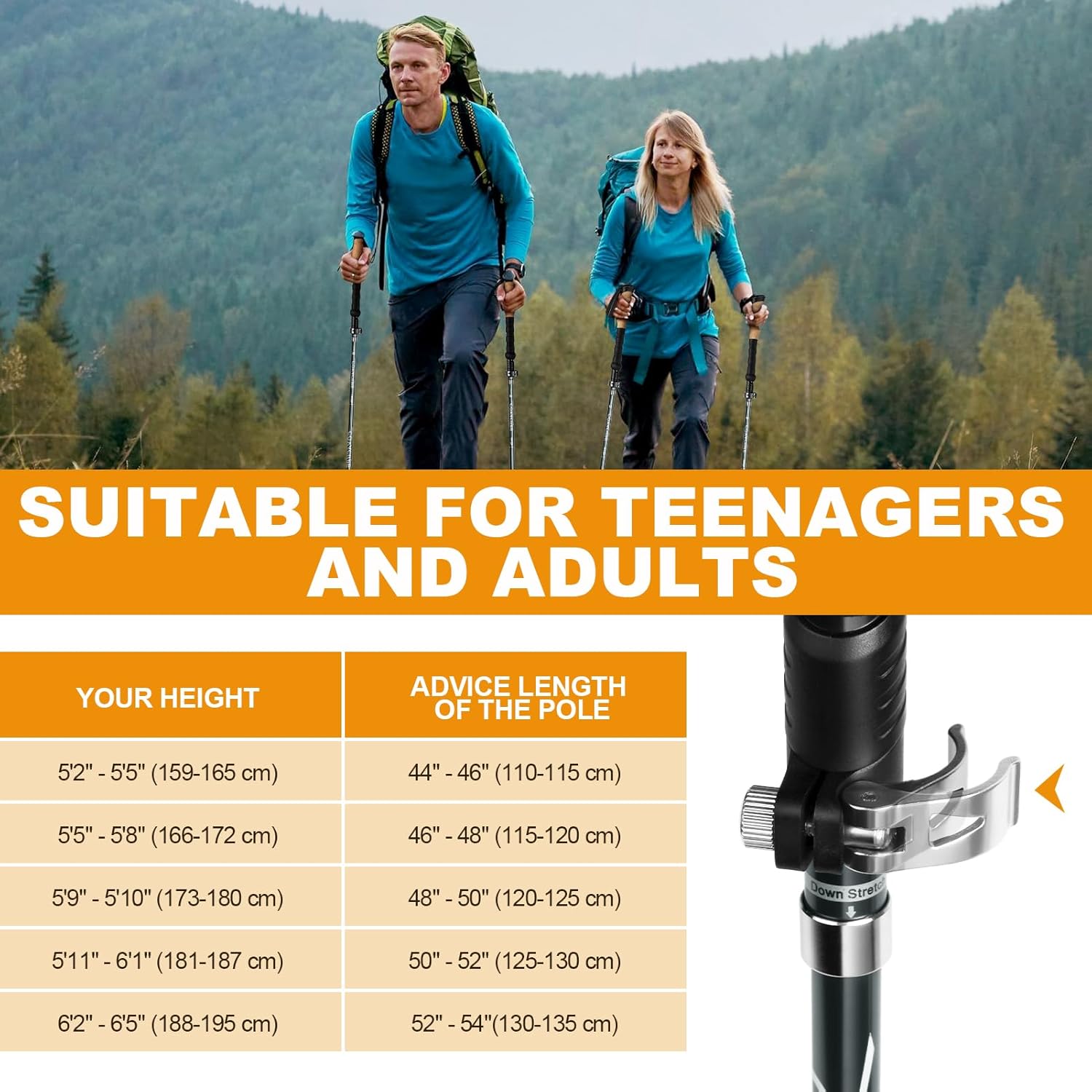 - 【Superior Strength and Durability】Our Trekking poles made from Aircraft Grade 7075 Aluminum, which withstands pressure and impacts better than carbon fiber. A surface treatment creates a protective coating against corrosion, which provides a high level of corrosion resistance. They provide excellent stability and built to withstand the toughest terrains.