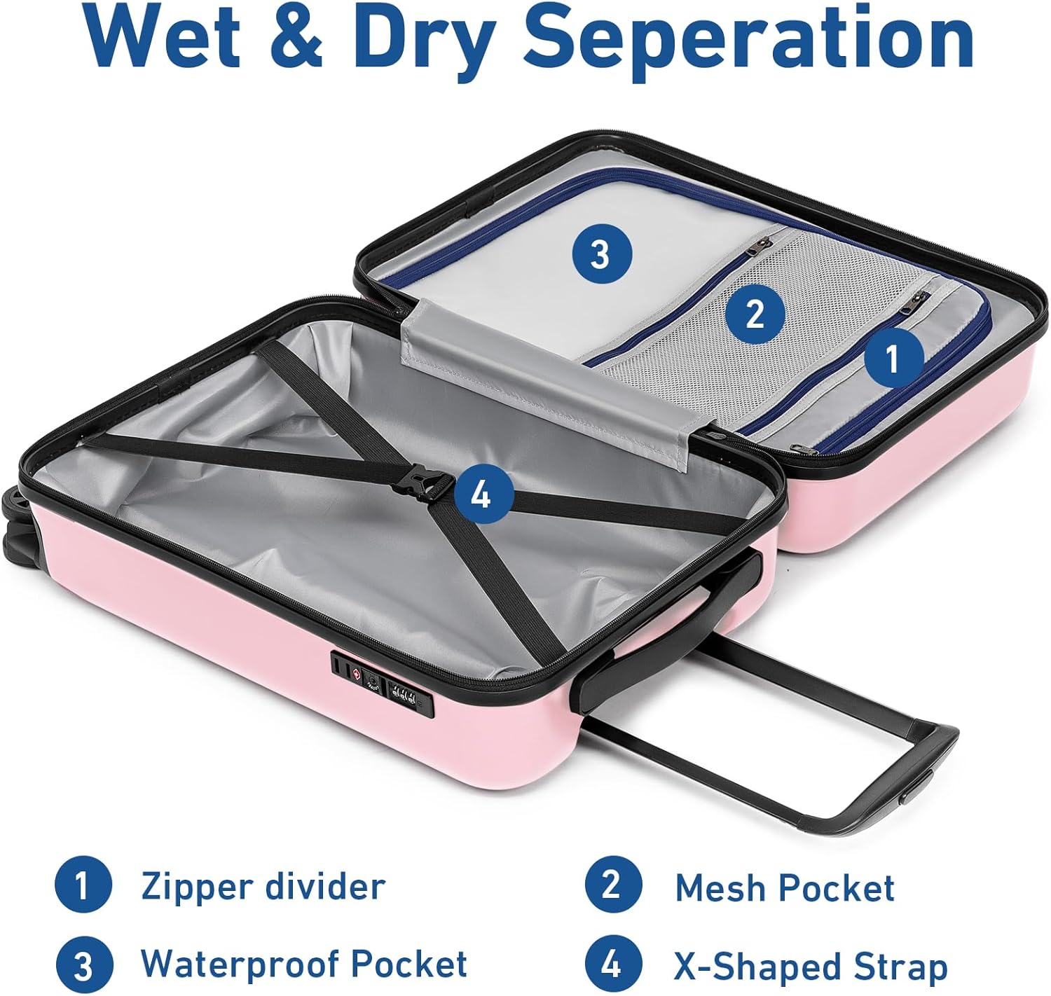 KYME Carry on luggage 22x14x9 Airline Approved Suitcase Hardshell With Double Spinner Wheels, PC+ABS TSA Lock Travel Luggage (Pink, 20" Carry On)