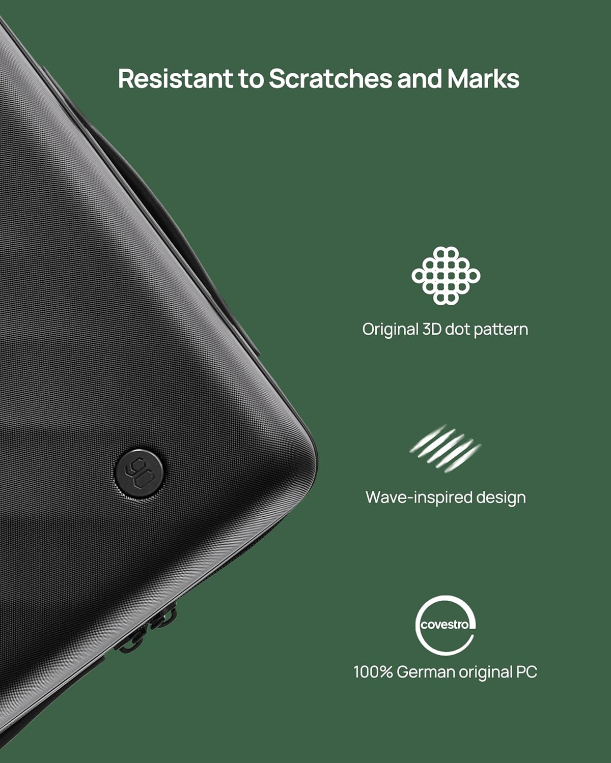 - 【Ultra-Tough Polycarbonate Shell】Constructed from 100% German Covestro polycarbonate, the scratch-resistant Micro-Diamond crush-proof exterior undergoes rigorous lab testing to withstand extreme impacts, rough handling, and accidental drops during air travel while maintaining its sleek appearance.