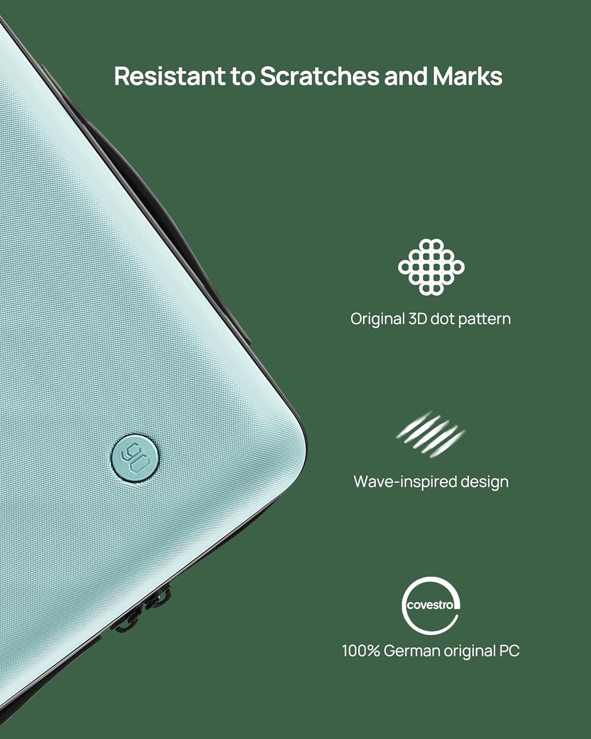 - 【Ultra-Tough Polycarbonate Shell】Constructed from 100% German Covestro polycarbonate, the scratch-resistant Micro-Diamond crush-proof exterior undergoes rigorous lab testing to withstand extreme impacts, rough handling, and accidental drops during air travel while maintaining its sleek appearance.