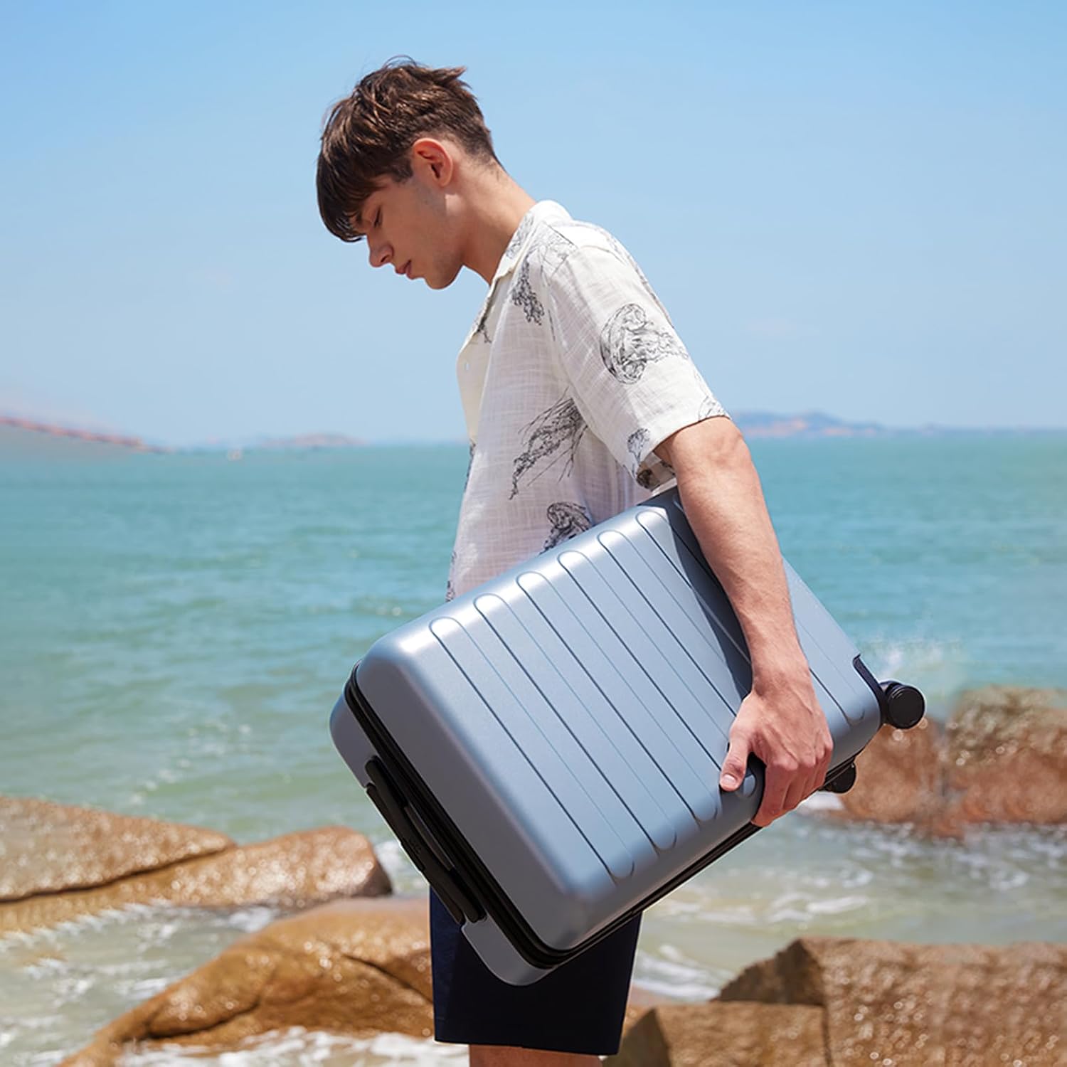 - 【Durable Hard Shell】Crafted from Germany Bayer PC material, this hard-shell PC luggage is scratch-resistant, odorless, and built to last. The sturdy aluminum telescopic handle adds extra strength and comfort for effortless handling.