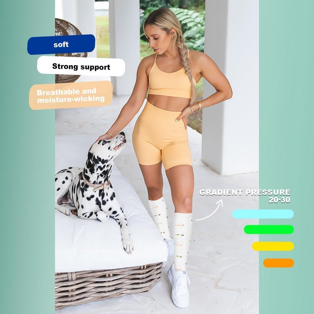 Graduated Compression Socks for Women&Men 20-30mmhg Knee High Socks Travel Hiking Running Stocking