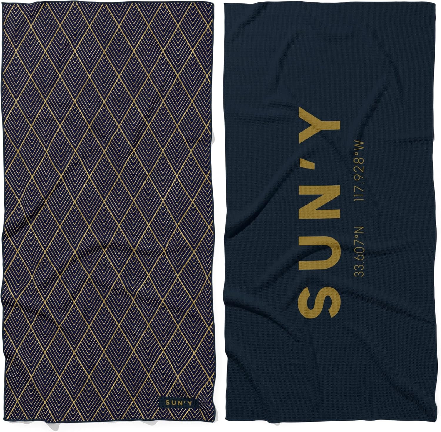 SUN'Y Waffle Microfiber Beach Towel – Sand Free, Quick Dry, Ultra Absorbent, Lightweight & Compact Travel Towel with Carry Bag - Large (63” x 31.5”), Newport
