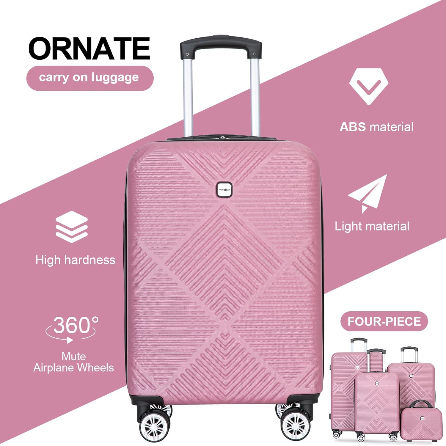 - 【4 Piece Luggage Sets】:Tripcomp luggage sets 4 pieces come in with comes in size 14 inch makeup box, 20 inch carry on, 24 and 28 inch checked luggage. These sets are made of durable, lightweight ABS material that prevents scratches and keeps the suitcase looking beautiful even after a trip. The four different sizes cater to your unique travel needs