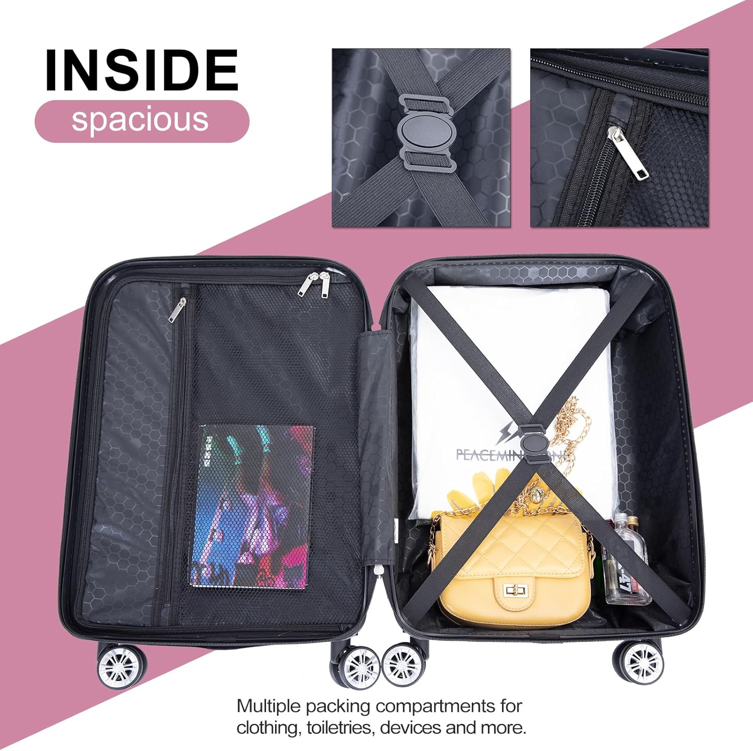 - 【Suitcase with Spinner Wheels】: Suitcases with spinner wheels can help save your strength and make your suitcase lighter. Multidirectional smooth and silent 360 ° spinner wheels offer effortless mobility in any direction. The double-wheel design is more durable