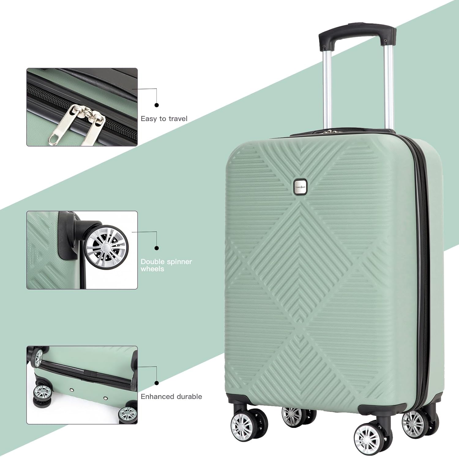 Luggage 4 Piece Set, Hardshell ABS Suitcase Set with Double Spinner Wheels, Lightweight Suitcase, Carry On and Checked Travel Luggage, Olive Green