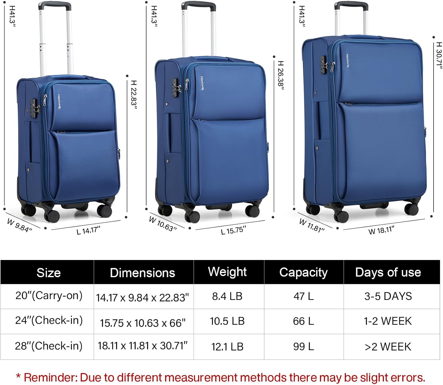 - 【Lightweight & Durable】Hanke 24 inch luggage is made of premium fabric material which is lightweight, and the thicked fabric can effectively prevent scratching, tearing, and violent transportation in travel. Perfect checked luggage for work business trips, overnight journey and so on.