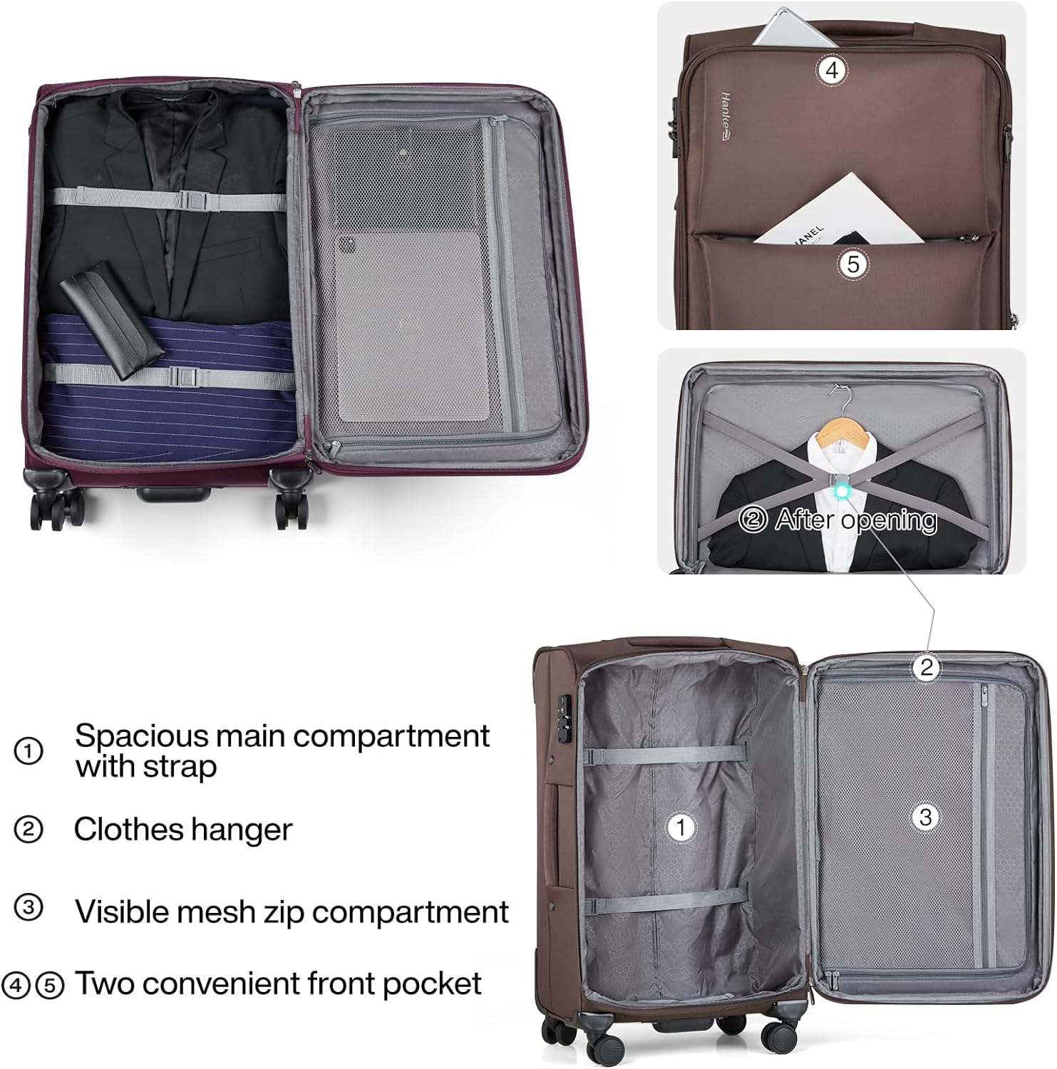 Hanke Softside Expandable 20 Inch Carry On Luggage with Wheels Airline Approved, TSA Luggage Lightweight Rolling Suitcases for Travel Carry On Bag(Coffee)