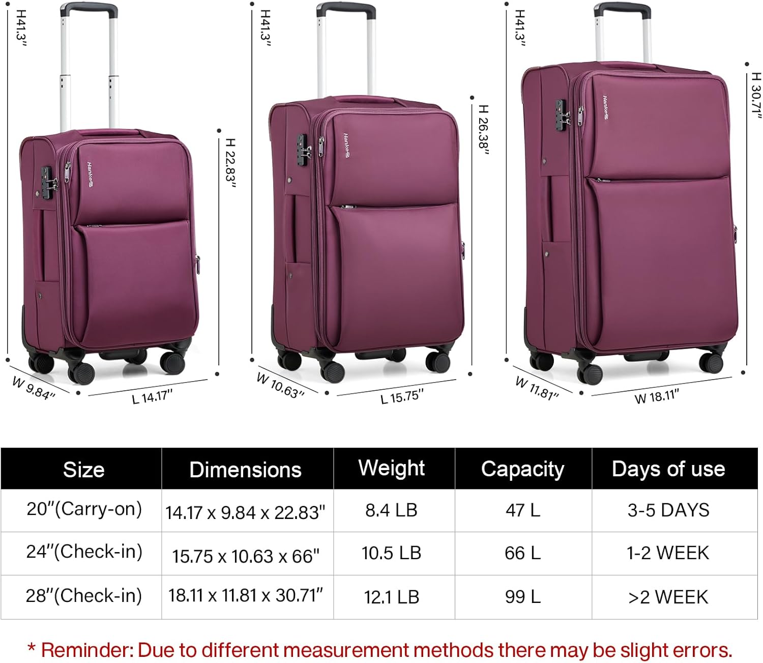 Hanke 28 Inch Luggage Softside Expandable Suitcases with Spinner Wheels, Travel Checked Luggage for Women Men(Purple)