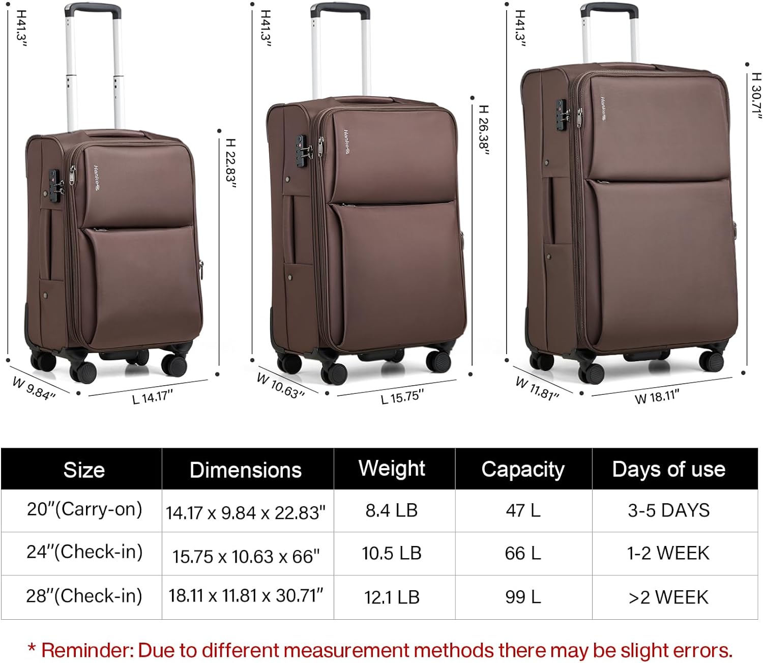 - 【Lightweight & Durable】Hanke softside large luggage is made of premium fabric material which is lightweight, and the thicked fabric can effectively prevent scratching, tearing, and violent transportation in travel. Perfect checked luggage for work business trips, overnight journey and so on.