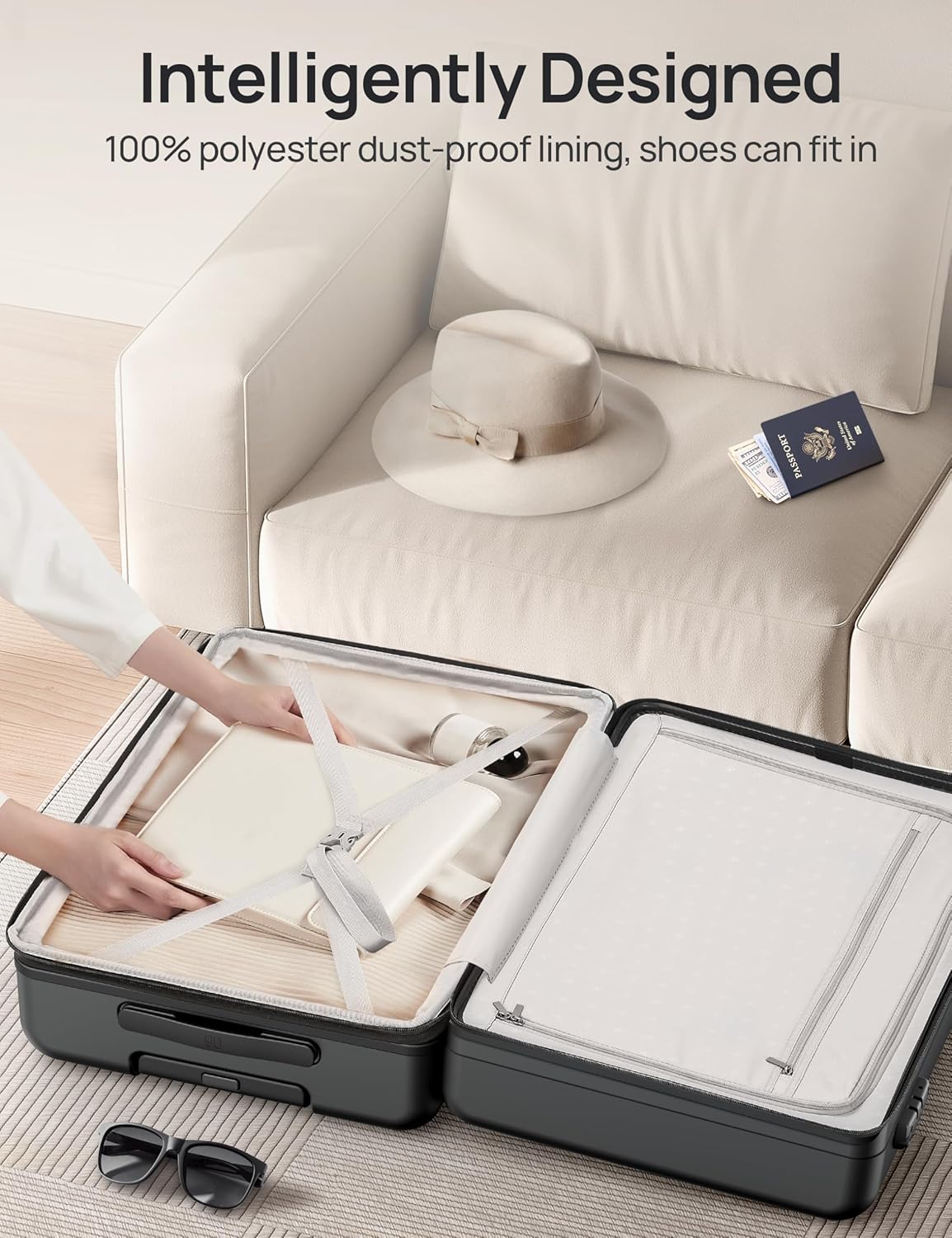 - 【TSA Lock Included】The built-in TSA-approved lock (default password: 0-0-0) ensures your belongings stay secure while allowing airport security to inspect your luggage without damage. Set your own password for added peace of mind.